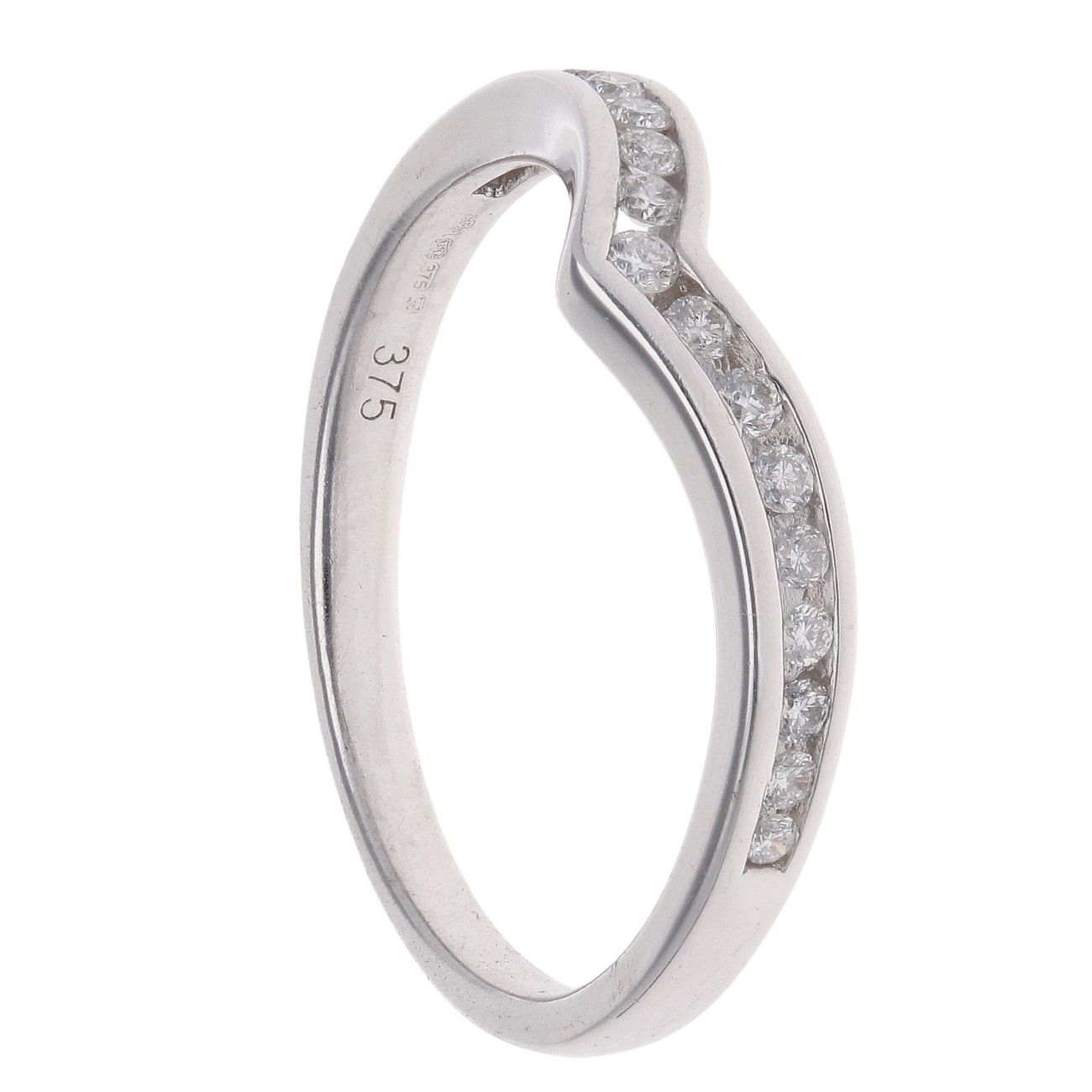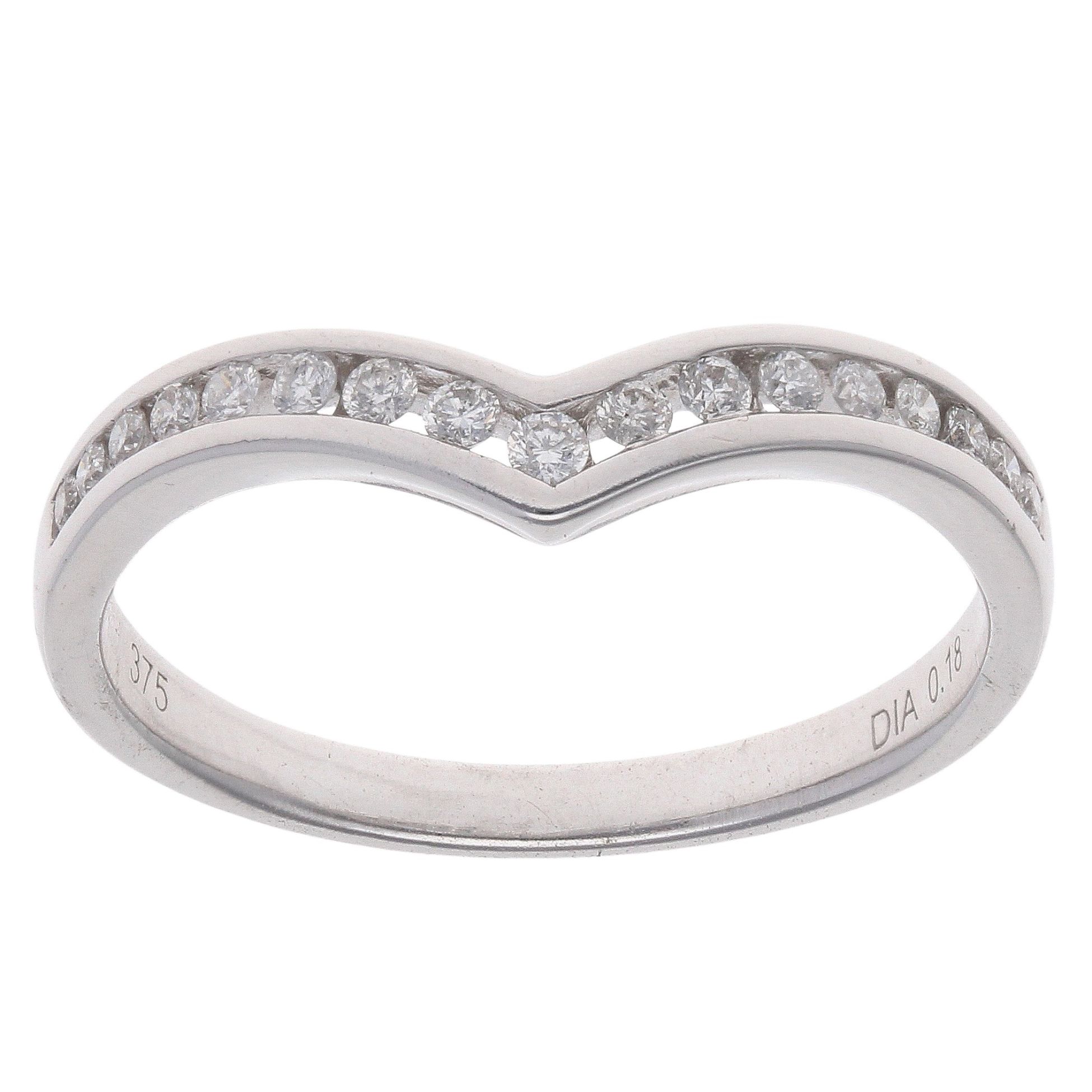 9ct White Gold 0.18ct Brilliant Cut Diamond Wishbone Ring