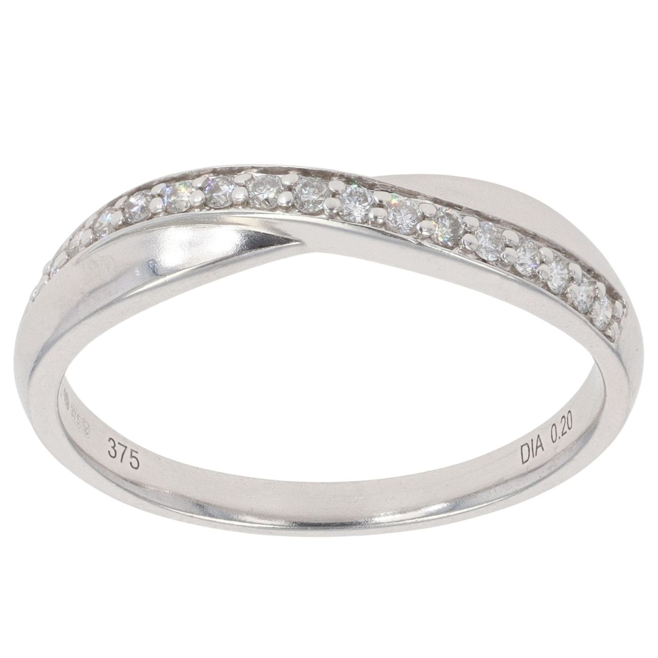 9ct White Gold 0.20ct Brilliant Cut Diamond Crossover Ring