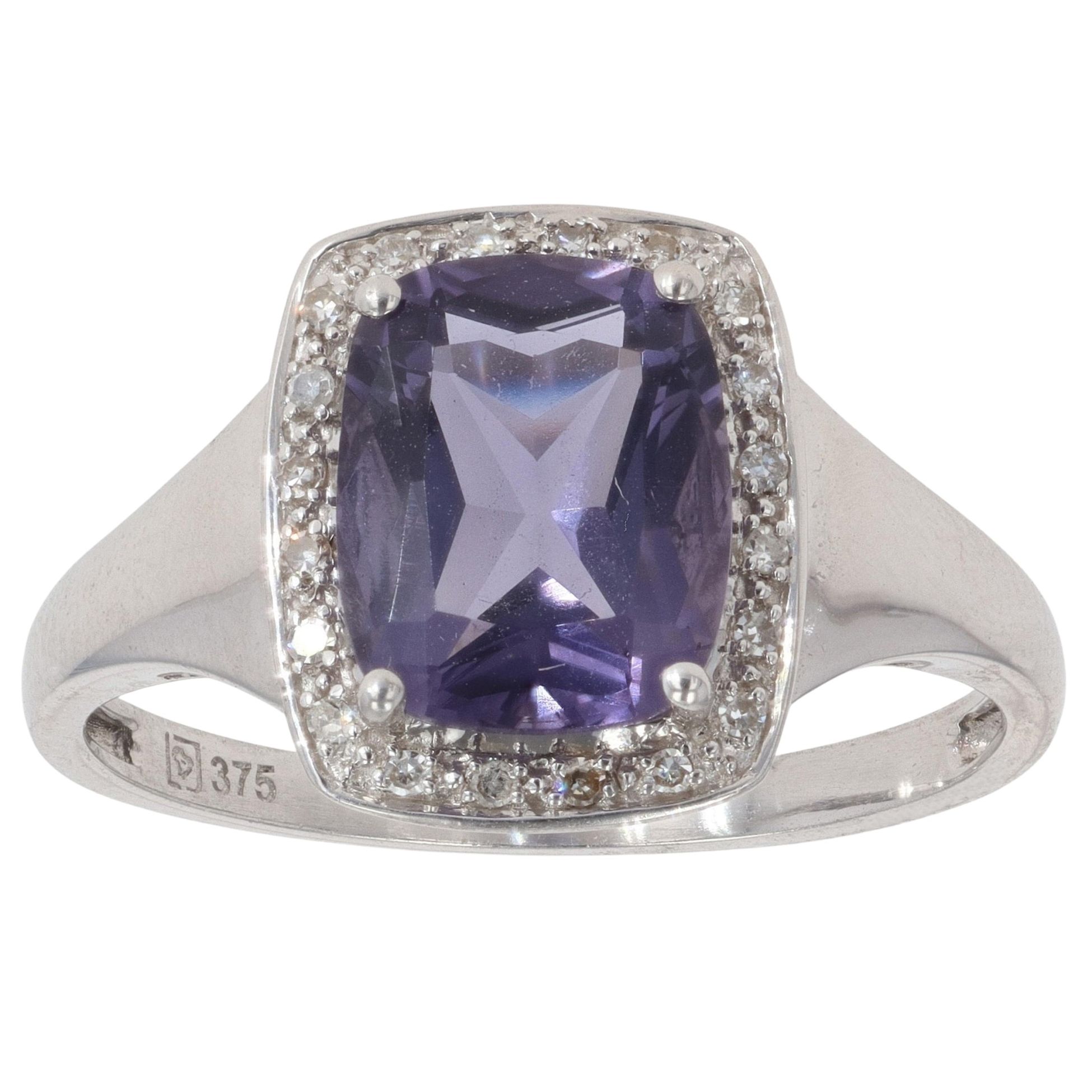 9ct White Gold 0.20ct Diamond and Amethyst Ring