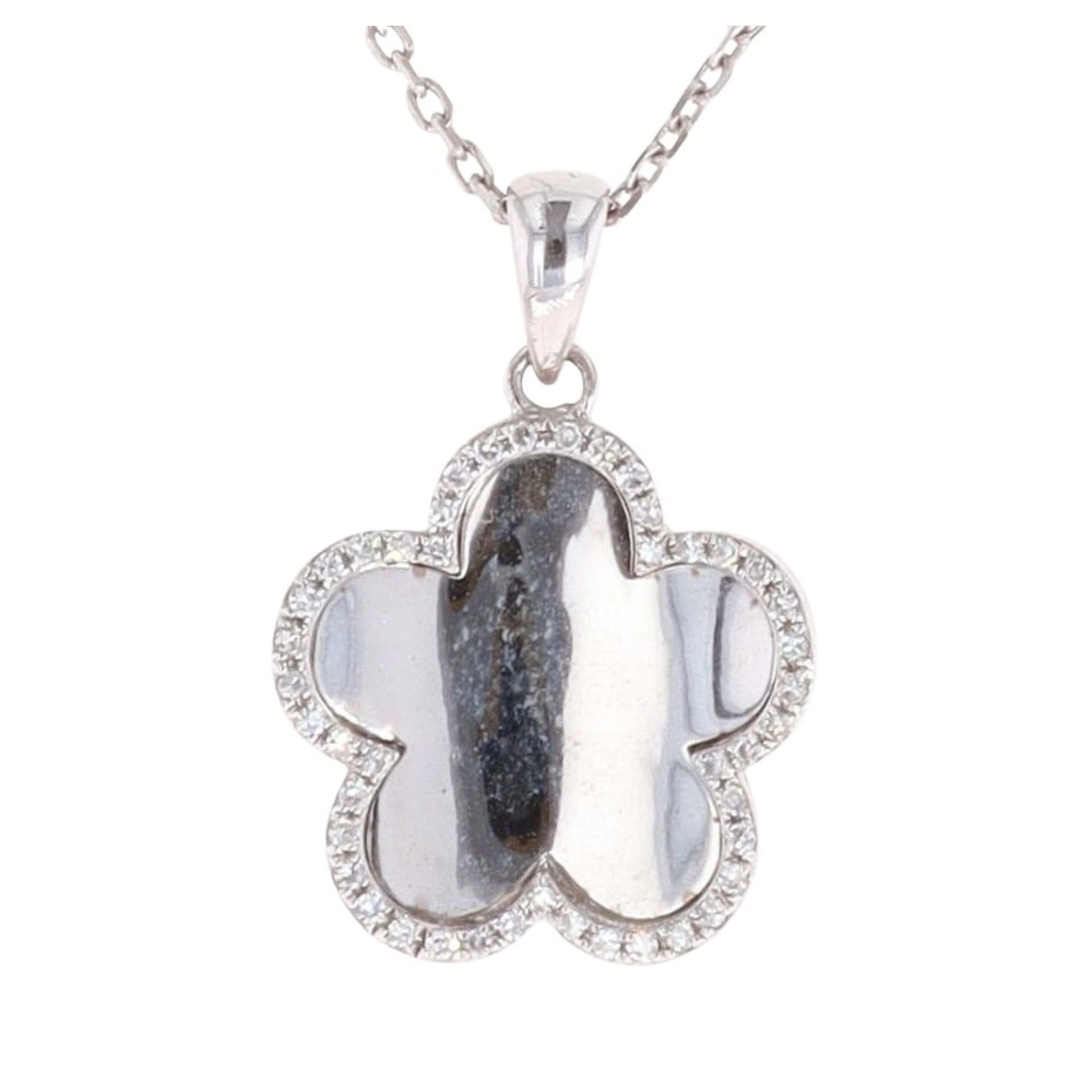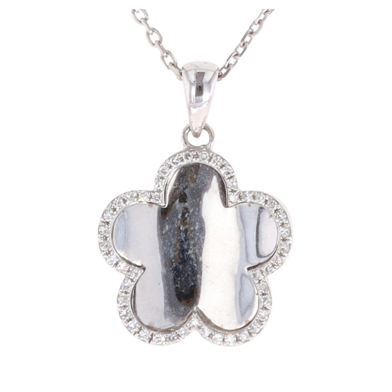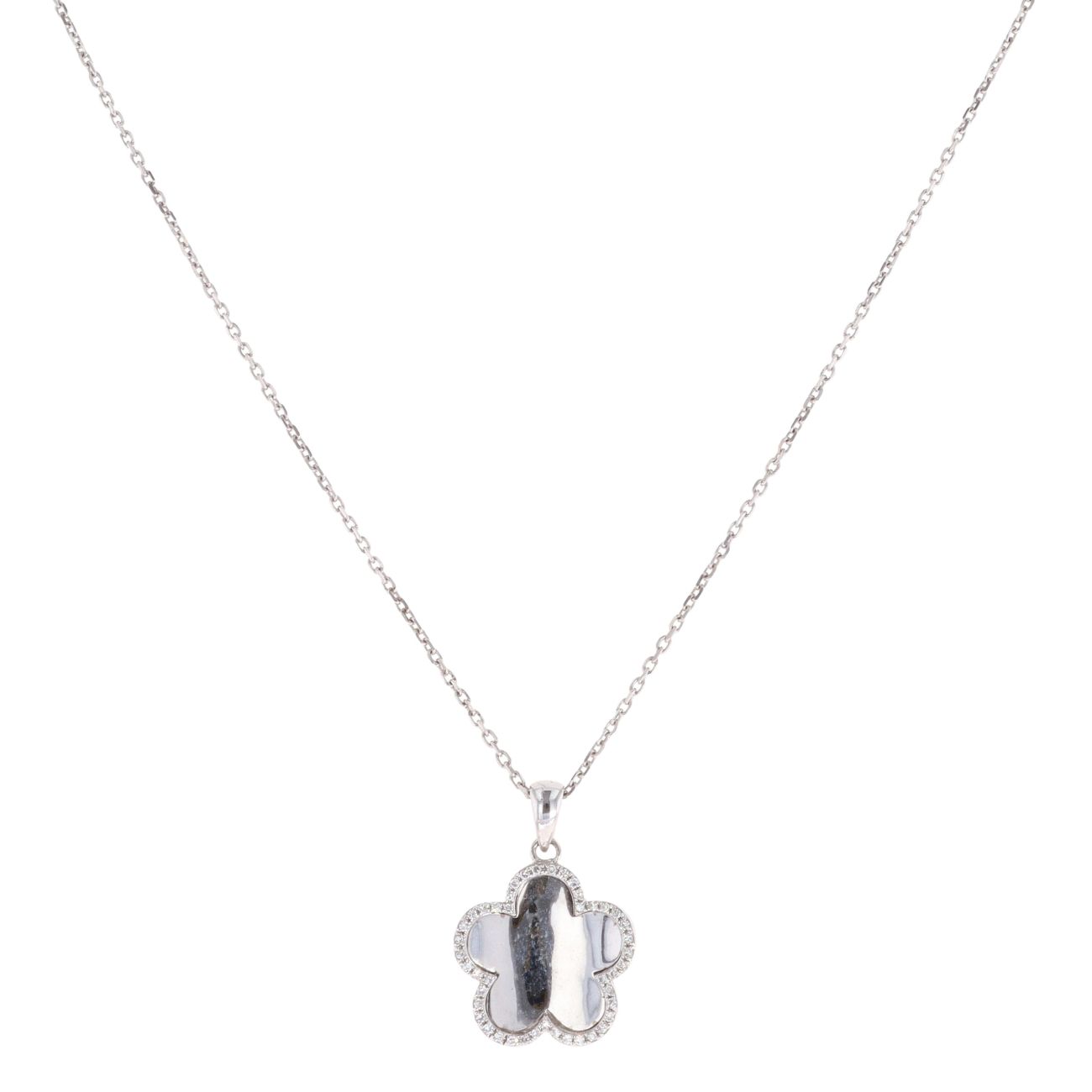 9ct White Gold 0.20ct Diamond Flower Pendant And Chain 20"