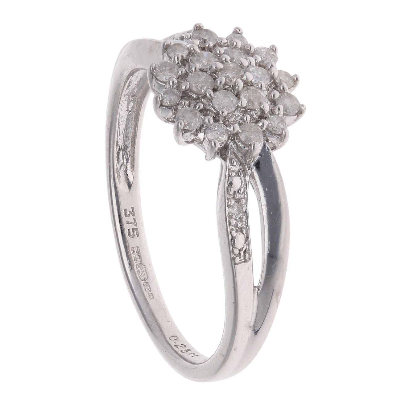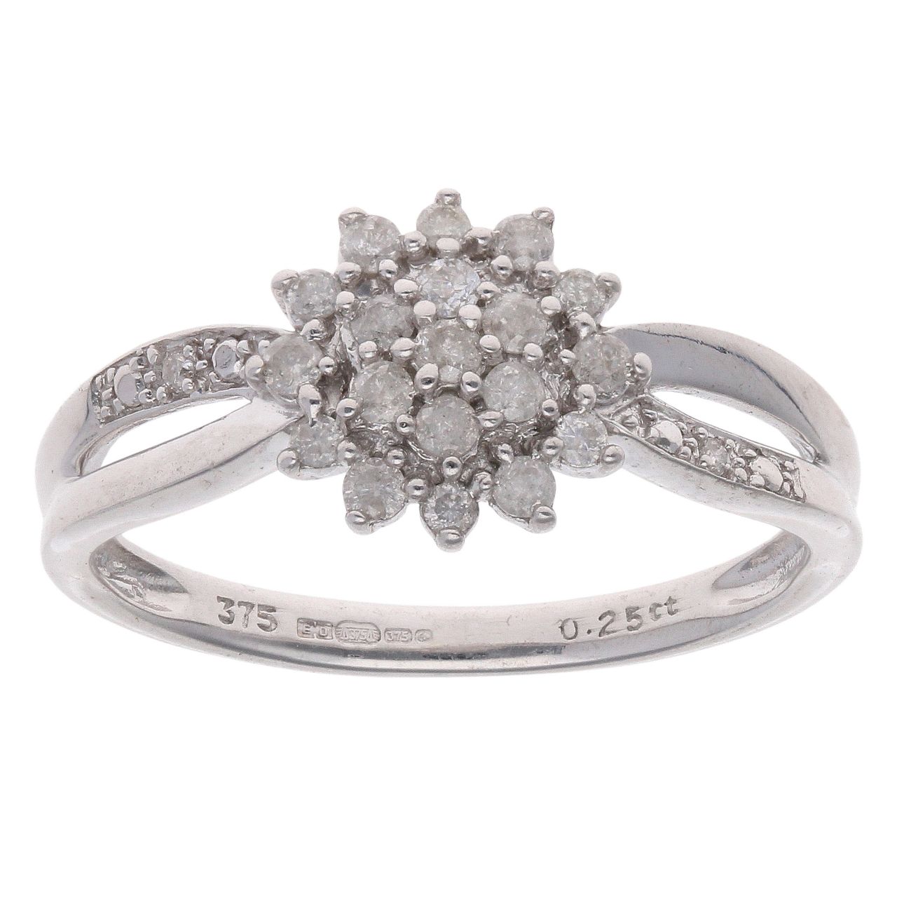 9ct White Gold 0.25ct Brilliant Cut Diamond Cluster Ring