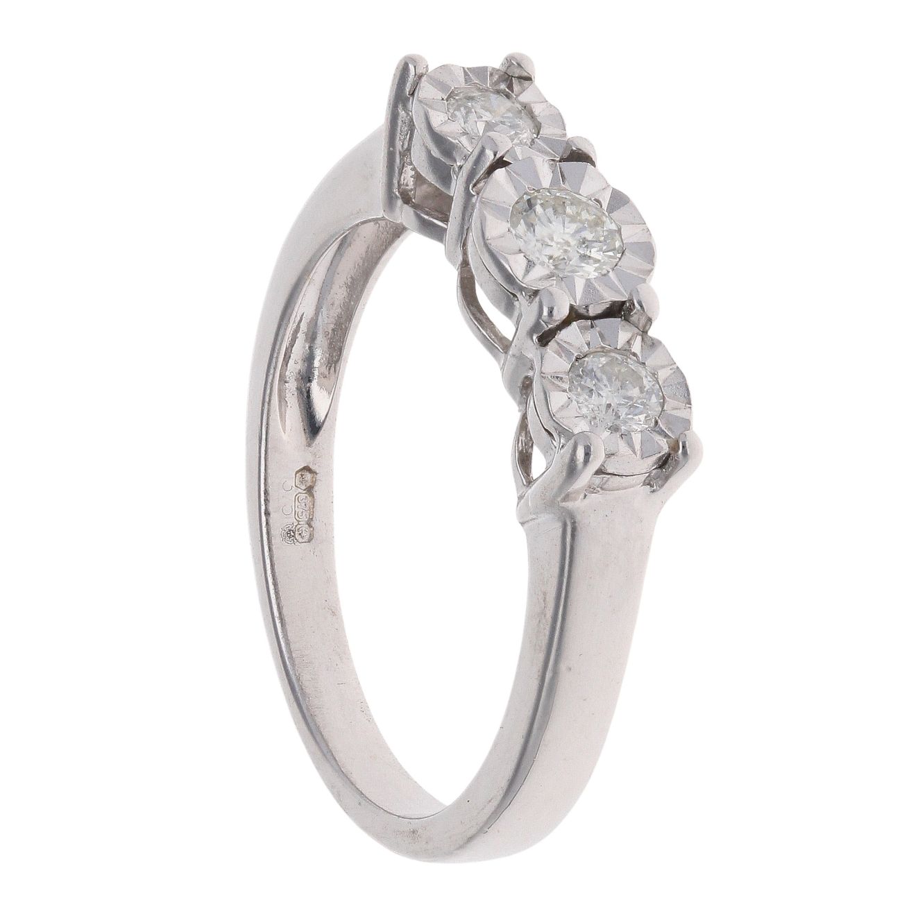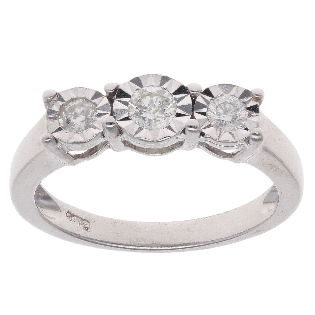 9ct White Gold 0.25ct Brilliant Cut Diamond Trilogy Ring