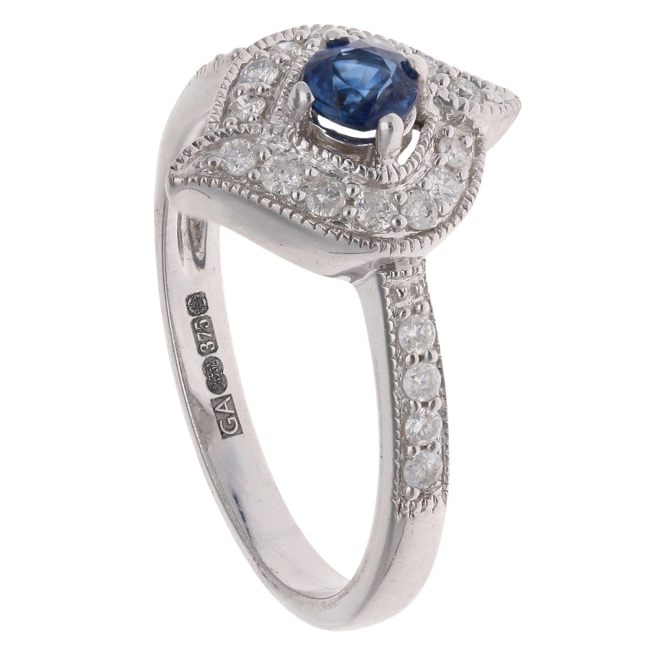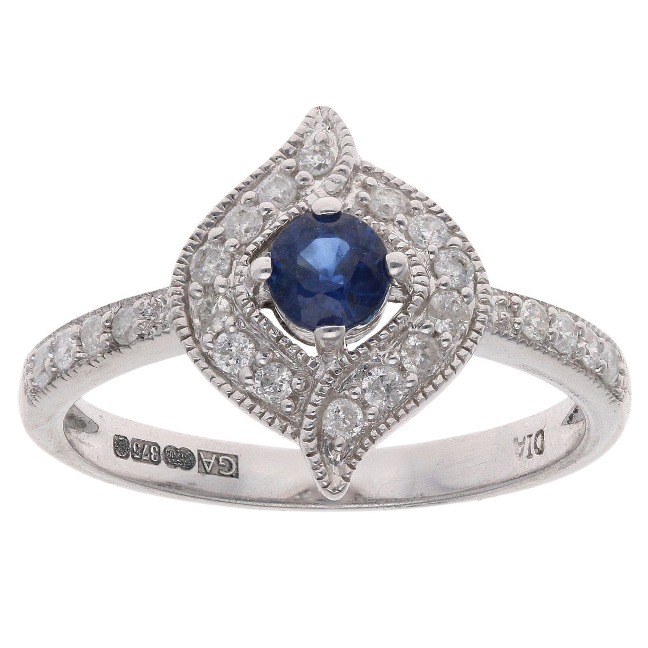 9ct White Gold 0.25ct Diamond And Sapphire Ring