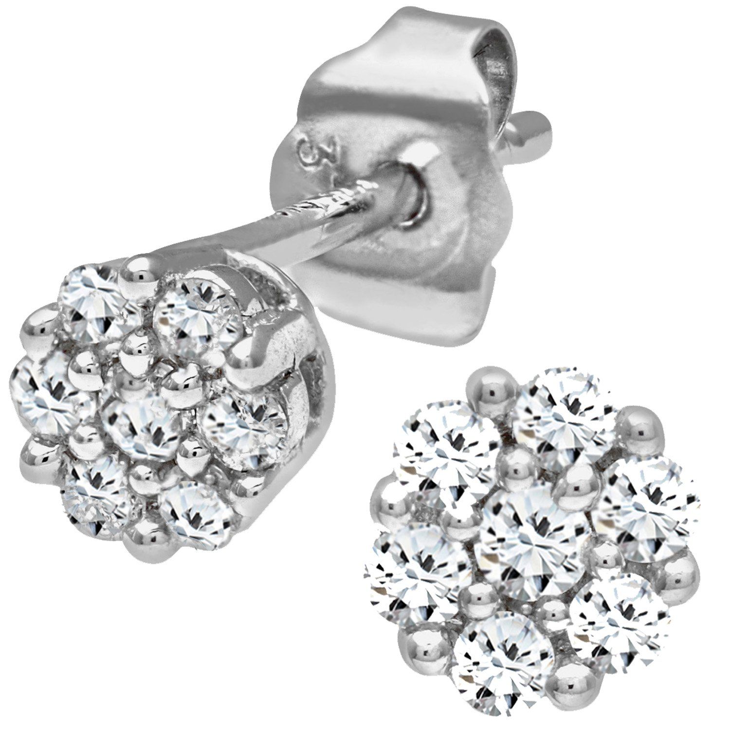 9ct White Gold 0.25ct Diamond Cluster Stud Earrings