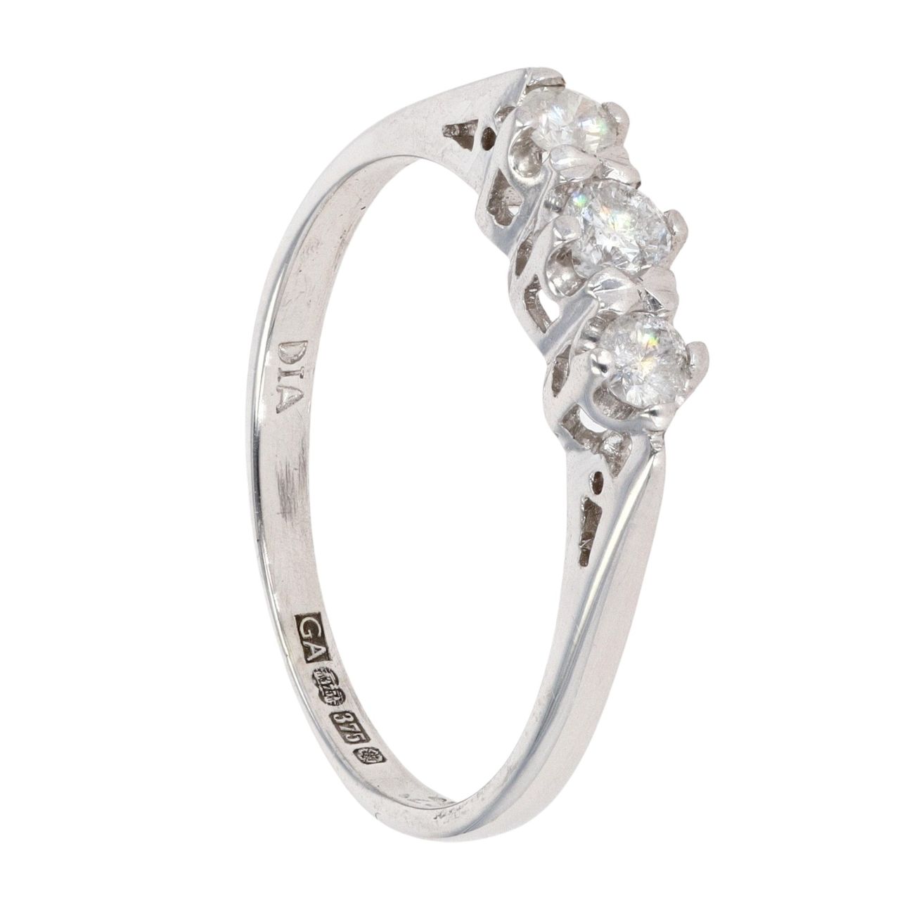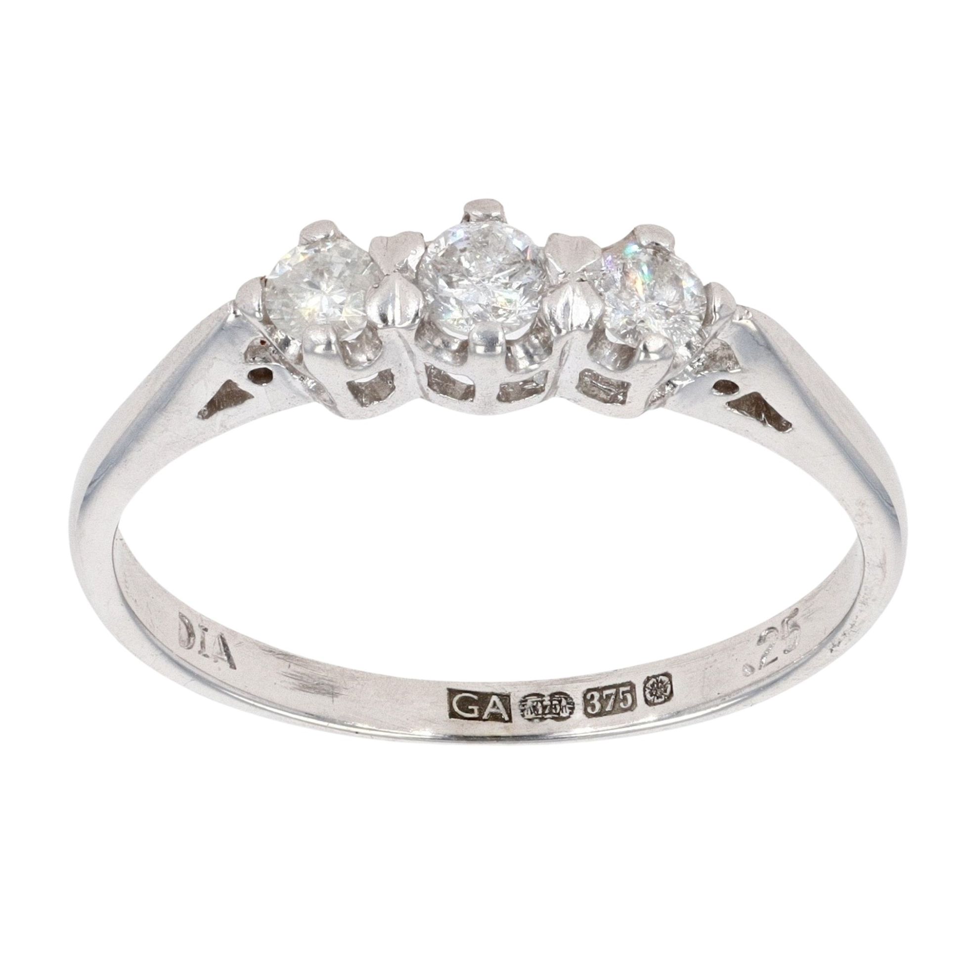 9ct White Gold 0.25ct Diamond Trilogy Ring