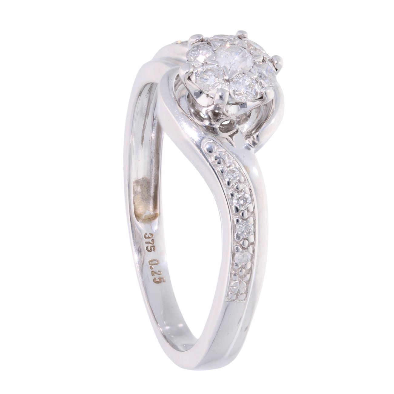 9ct White Gold 0.25ct Diamond Twist Cluster Ring