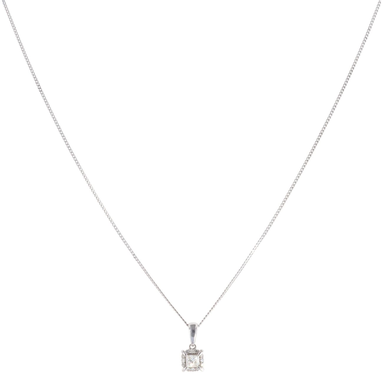 9ct White Gold 0.25ct Princess And Brilliant Cut Diamond Pendant And Chain 18"