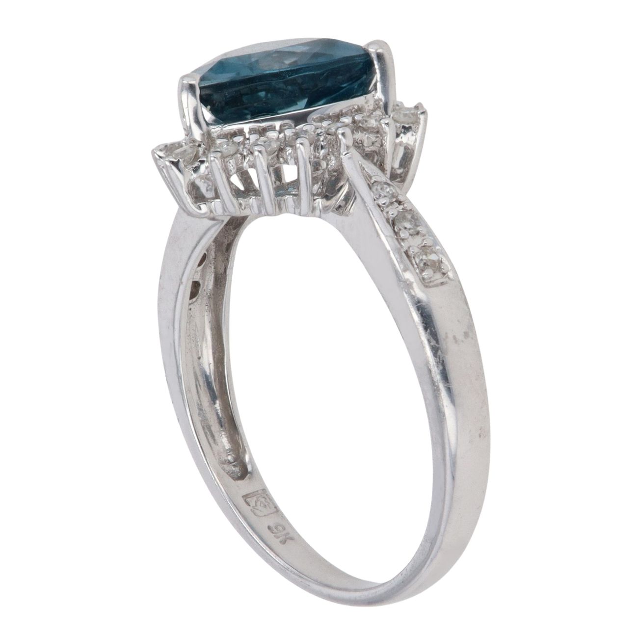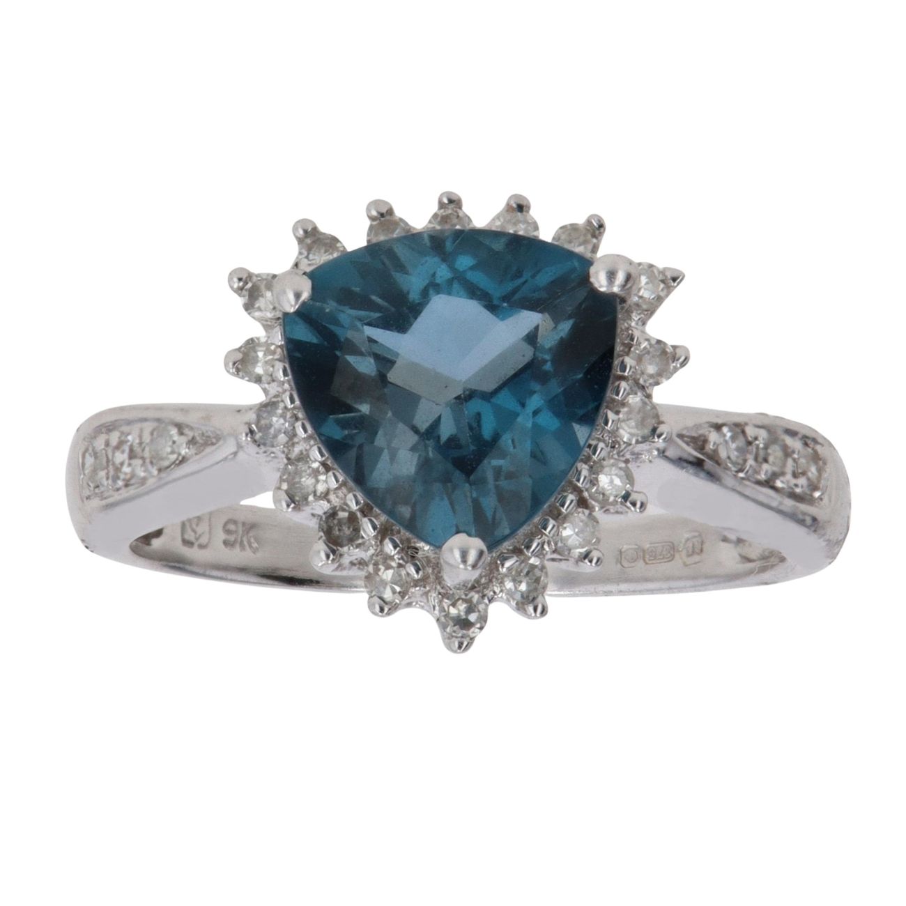 9ct White Gold 0.26ct Diamond And Blue Topaz Cluster Ring