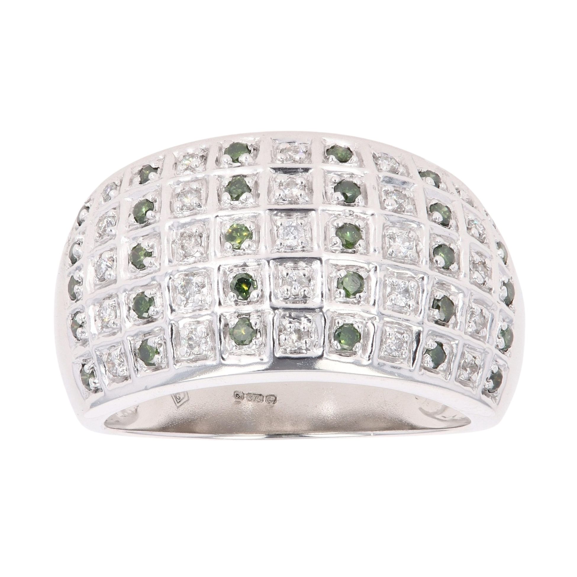 9ct White Gold 0.30ct Brilliant Cut Green And White Diamond Ring