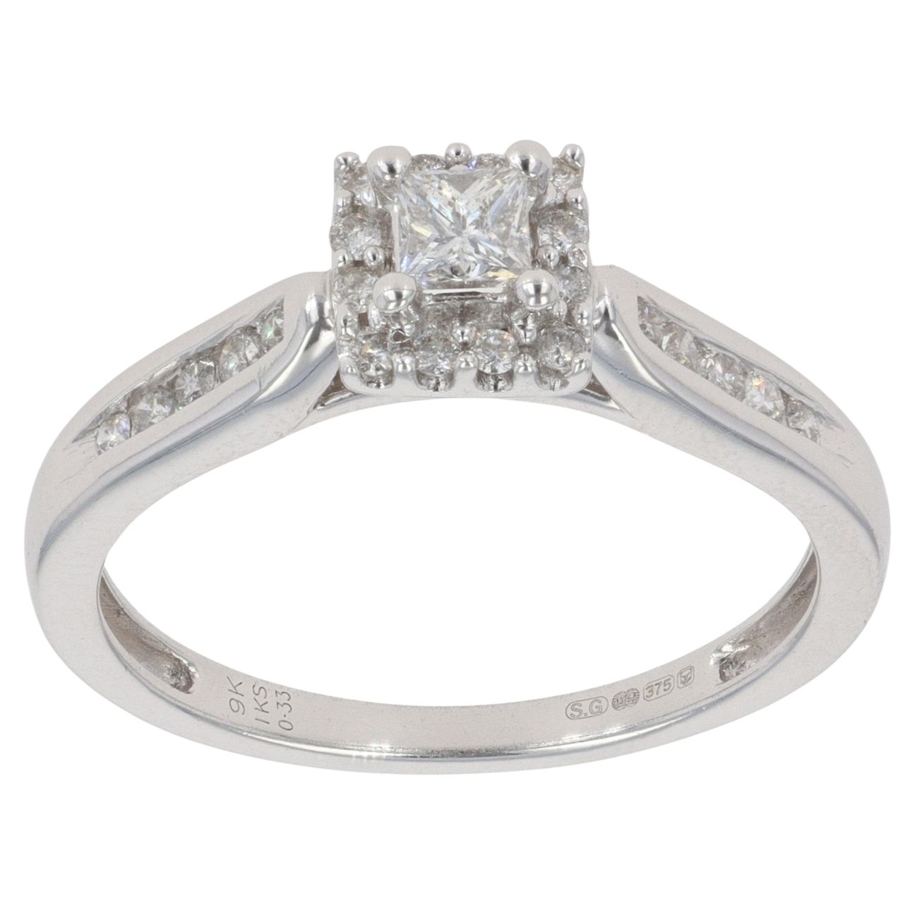 9ct White Gold 0.33ct Princess And Brilliant Cut Diamond Cluster Ring