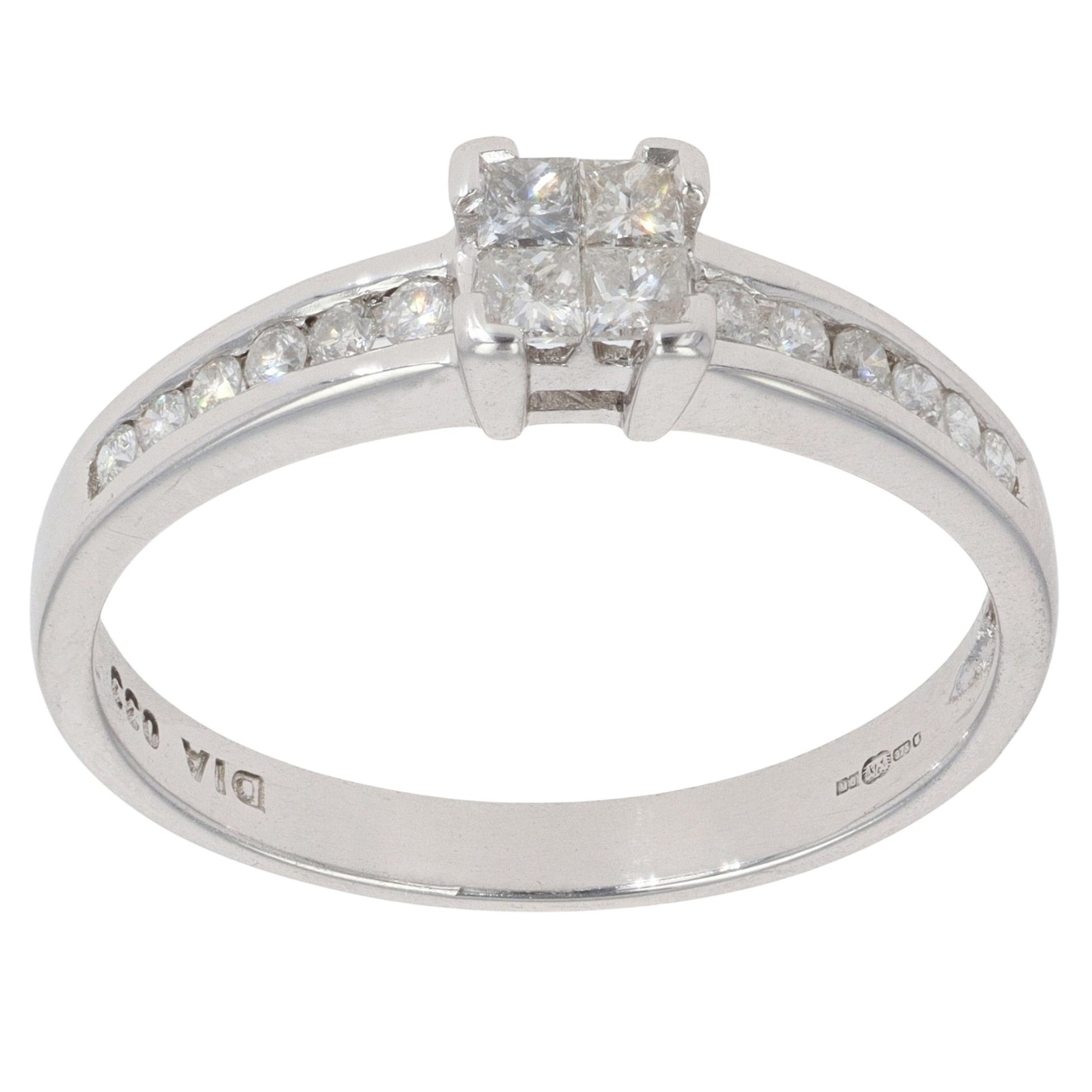 9ct White Gold 0.33ct Princess and Brilliant Cut Diamond Cluster Ring