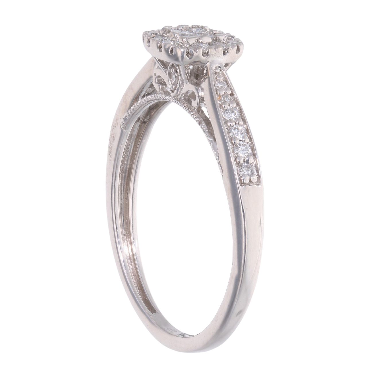 9ct White Gold 0.33ct Princess and Brilliant Cut Diamond Cluster Ring