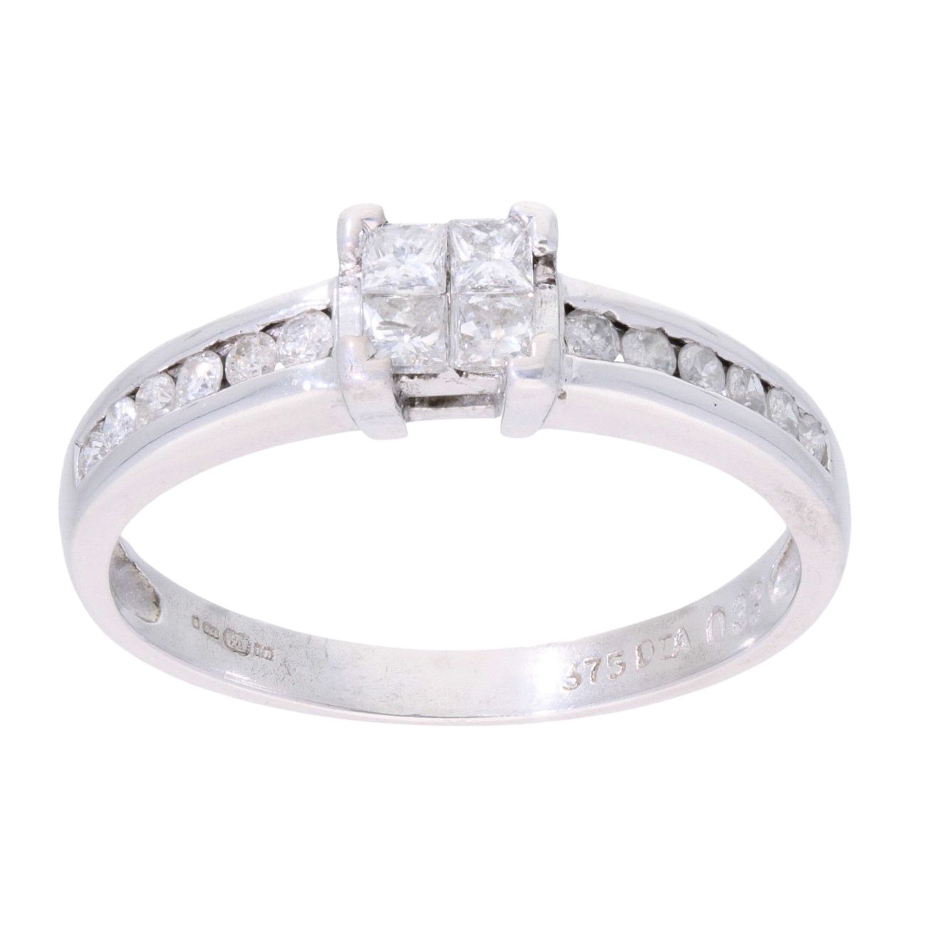 9ct White Gold 0.33ct Princess Cut Diamond Cluster Ring