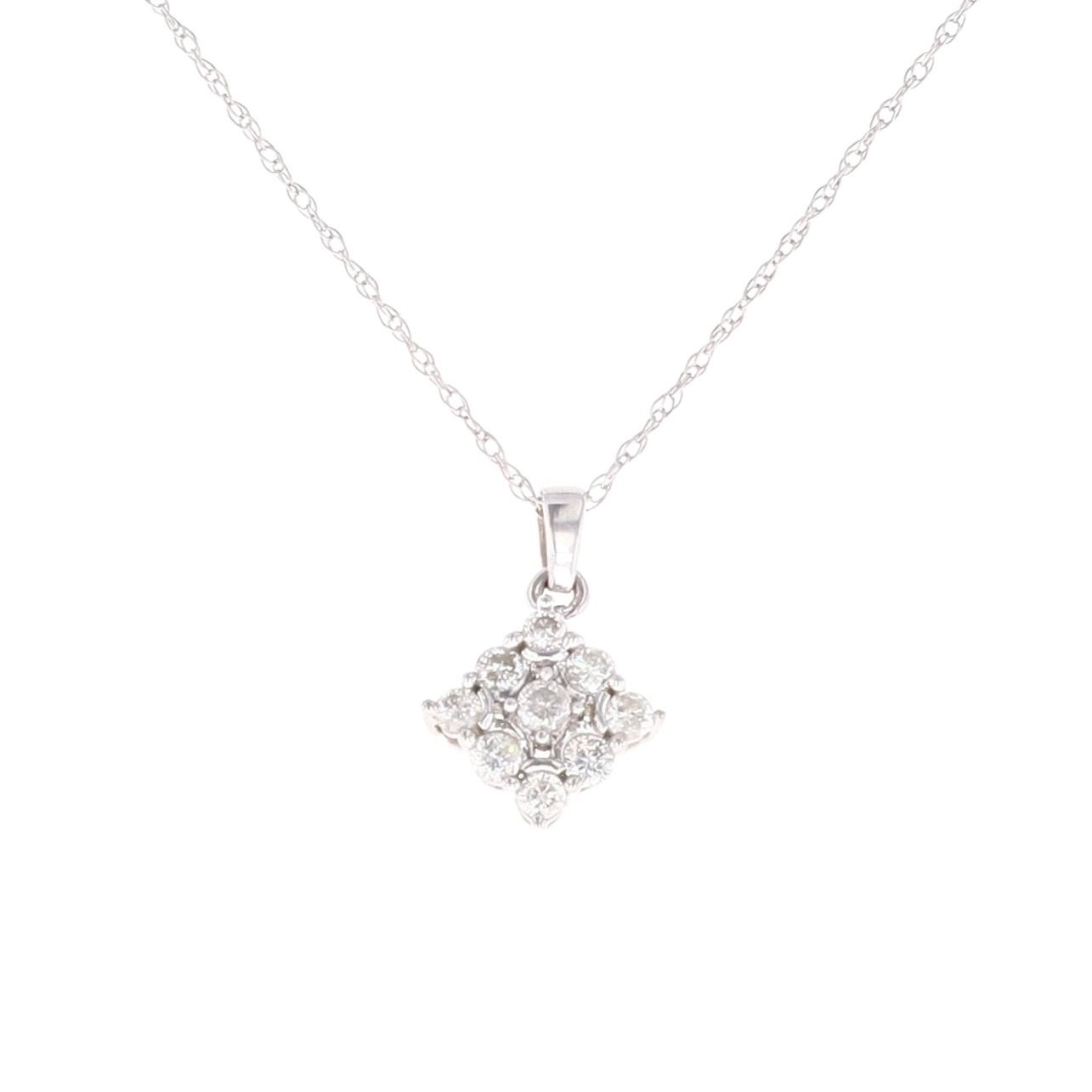 9ct White Gold 0.35ct Diamond Cluster Pendant and Chain 18"