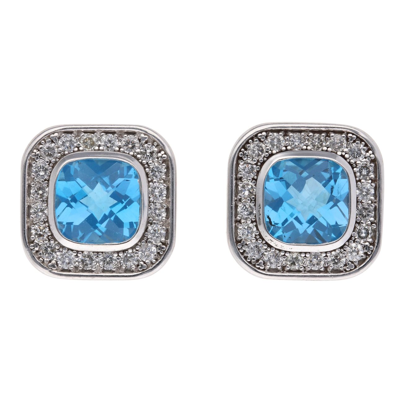 9ct White Gold 0.40ct Brilliant Cut Diamond And Blue Topaz Cluster Stud Earrings