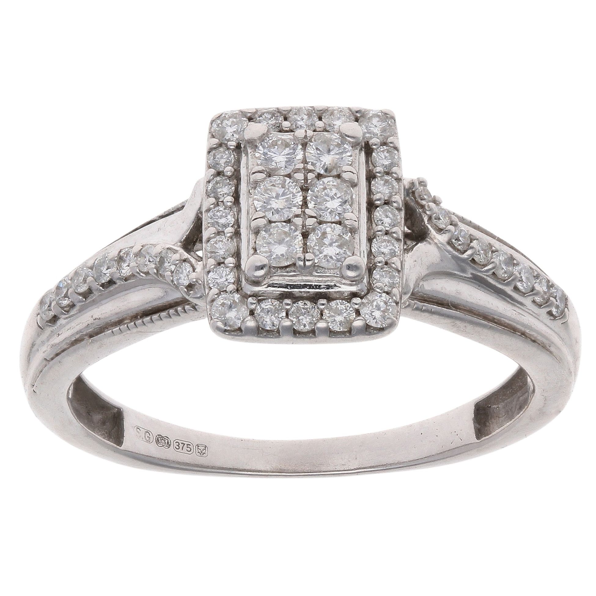 9ct White Gold 0.40ct Brilliant Cut Diamond Cluster Ring