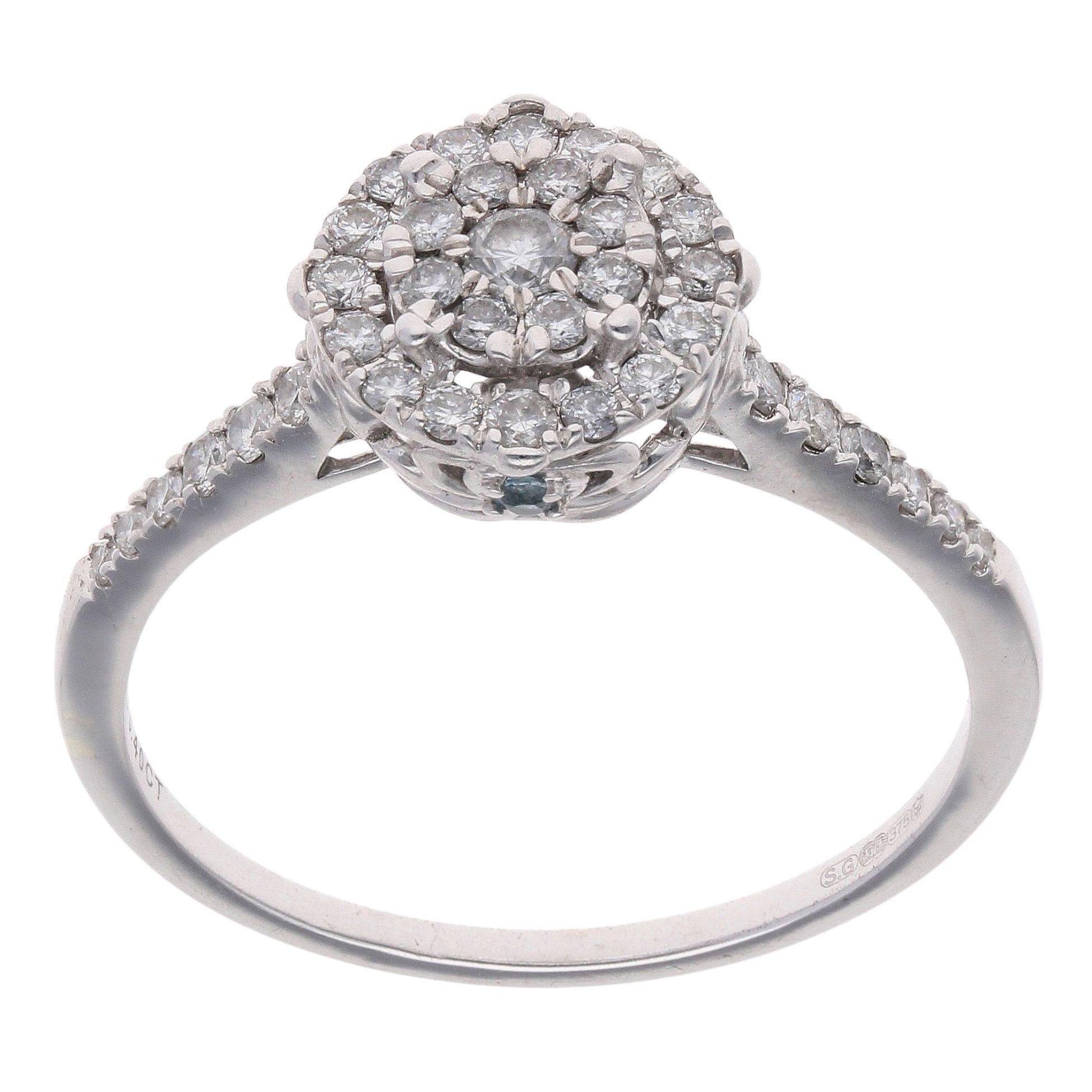 9ct White Gold 0.40ct Diamond and Topaz Disney Cluster Ring