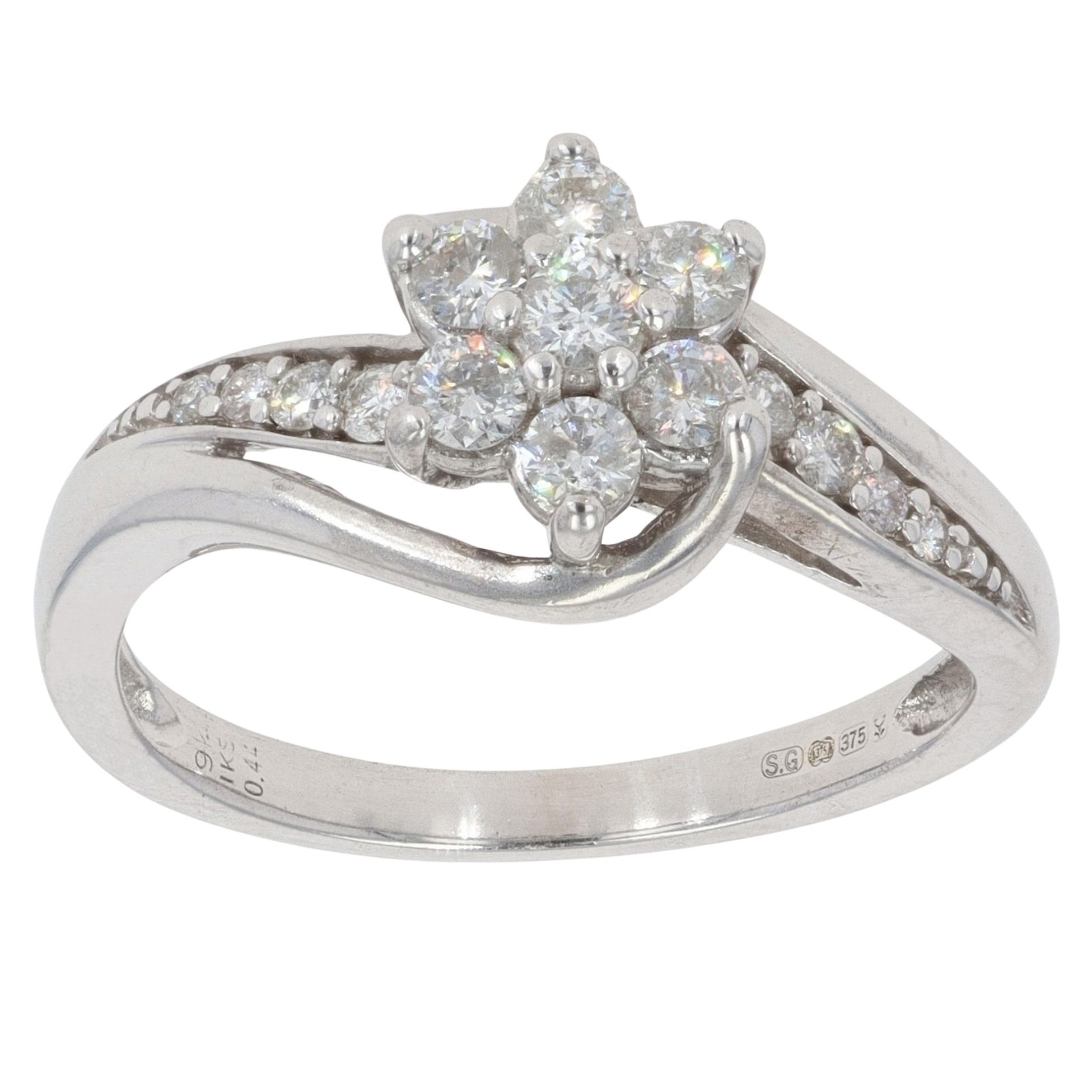 9ct White Gold 0.44ct Brilliant Cut Diamond Cluster Ring