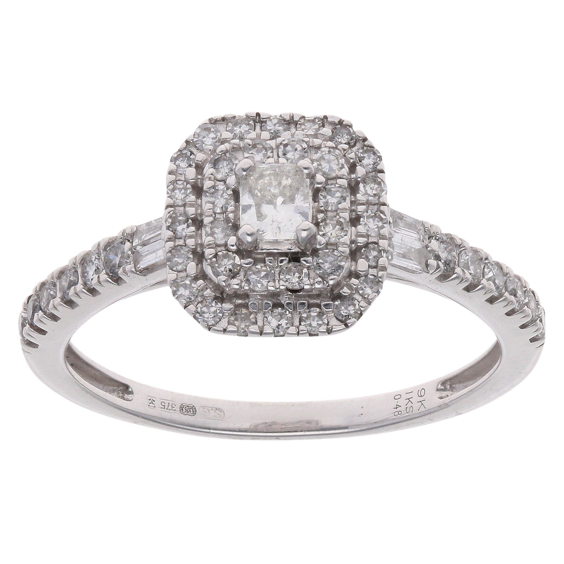 9ct White Gold 0.48ct Princess, Baguette And Brilliant Cut Diamond Cluster Ring
