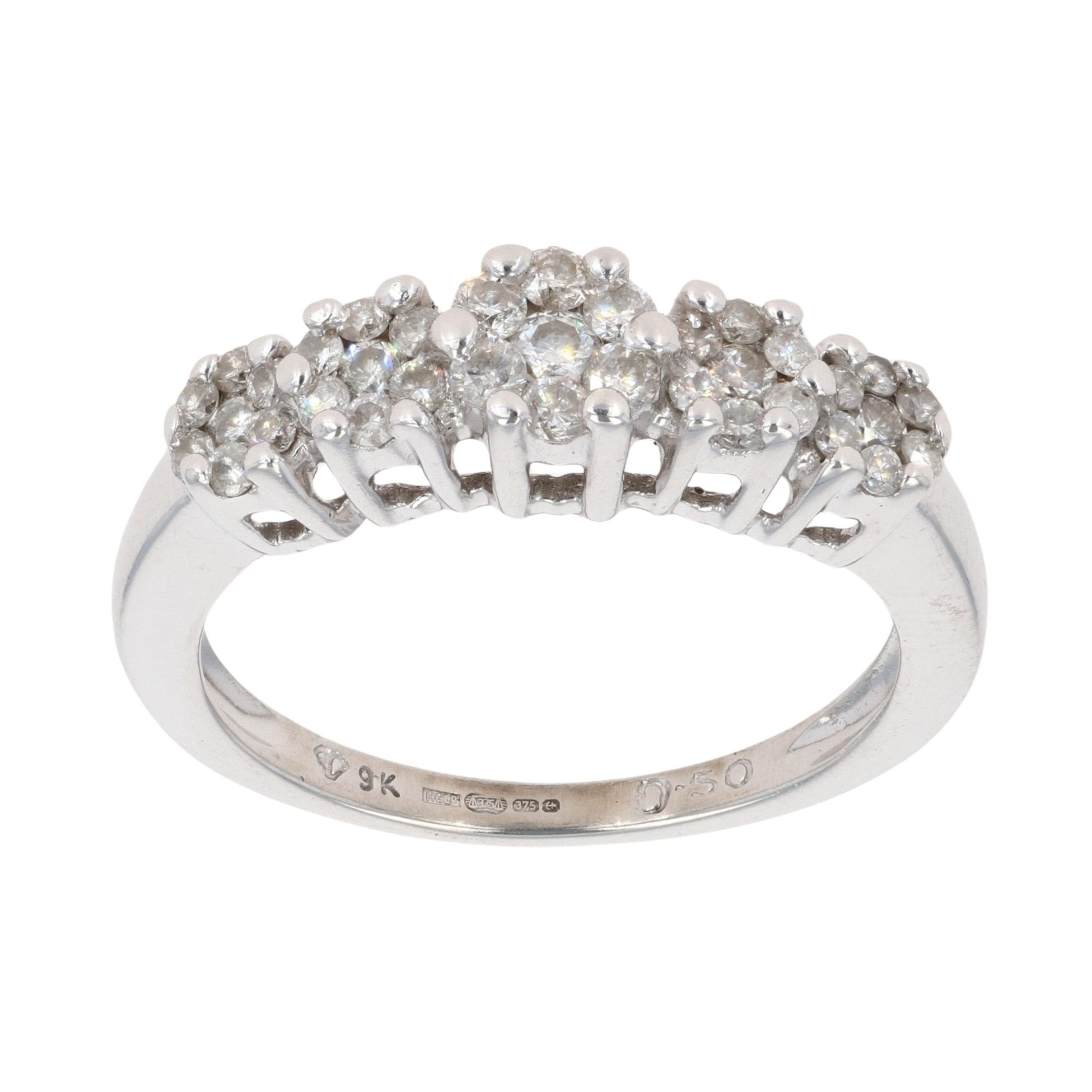 9ct White Gold 0.50ct Brilliant Cut Diamond Cluster Ring