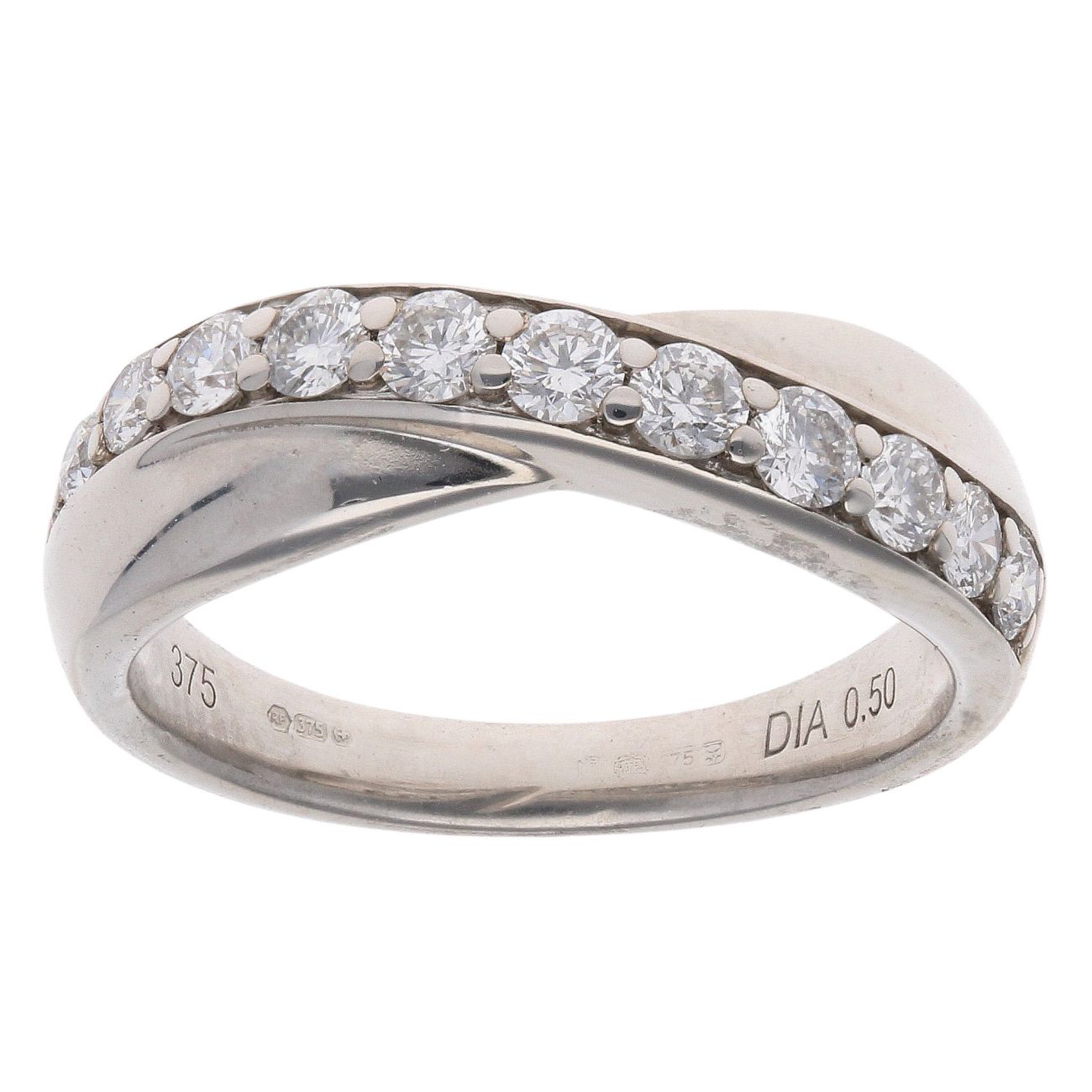 9ct White Gold 0.50ct Brilliant Cut Diamond Crossover Ring