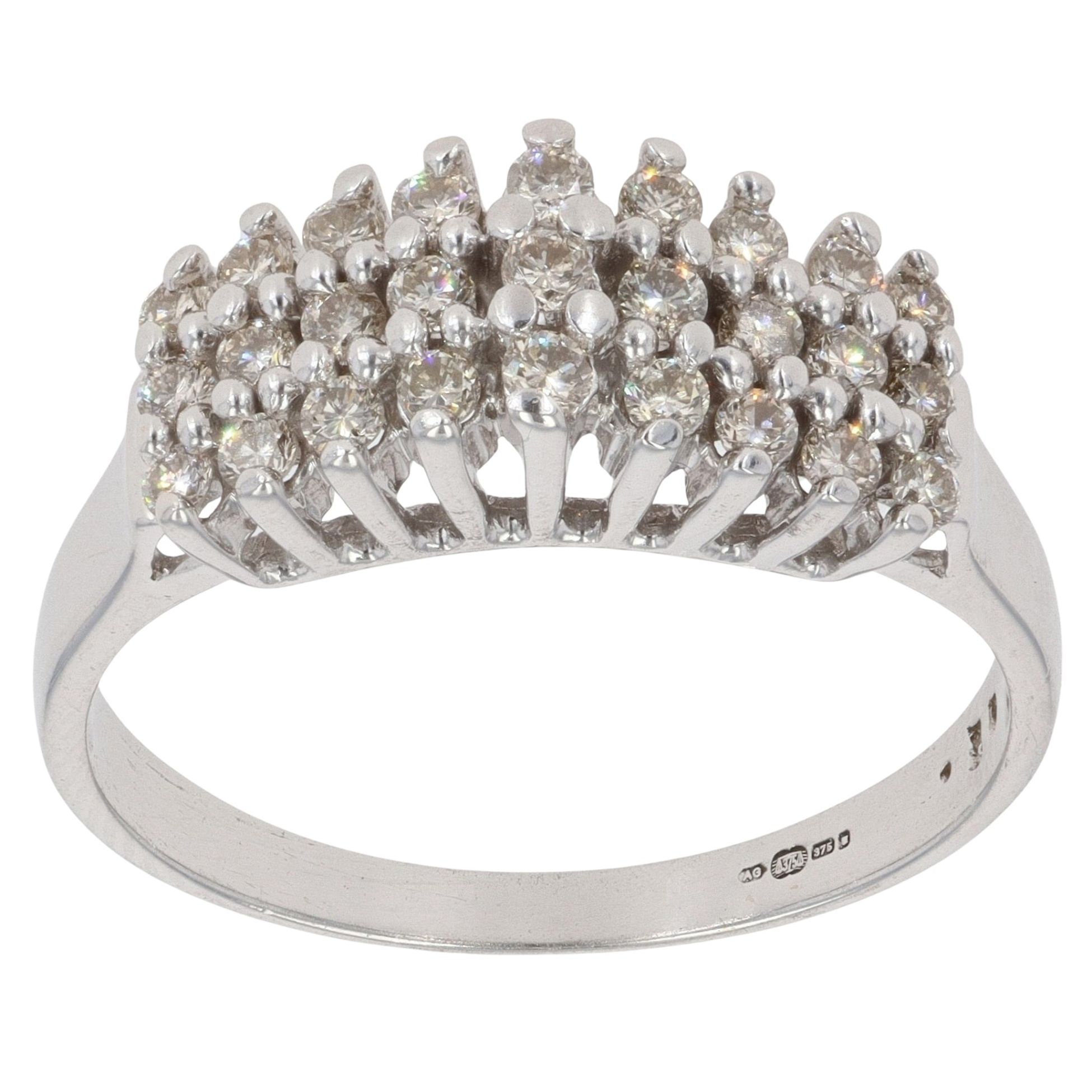 9ct White Gold 0.50ct Brilliant Cut Diamond Three Row Fancy Ring