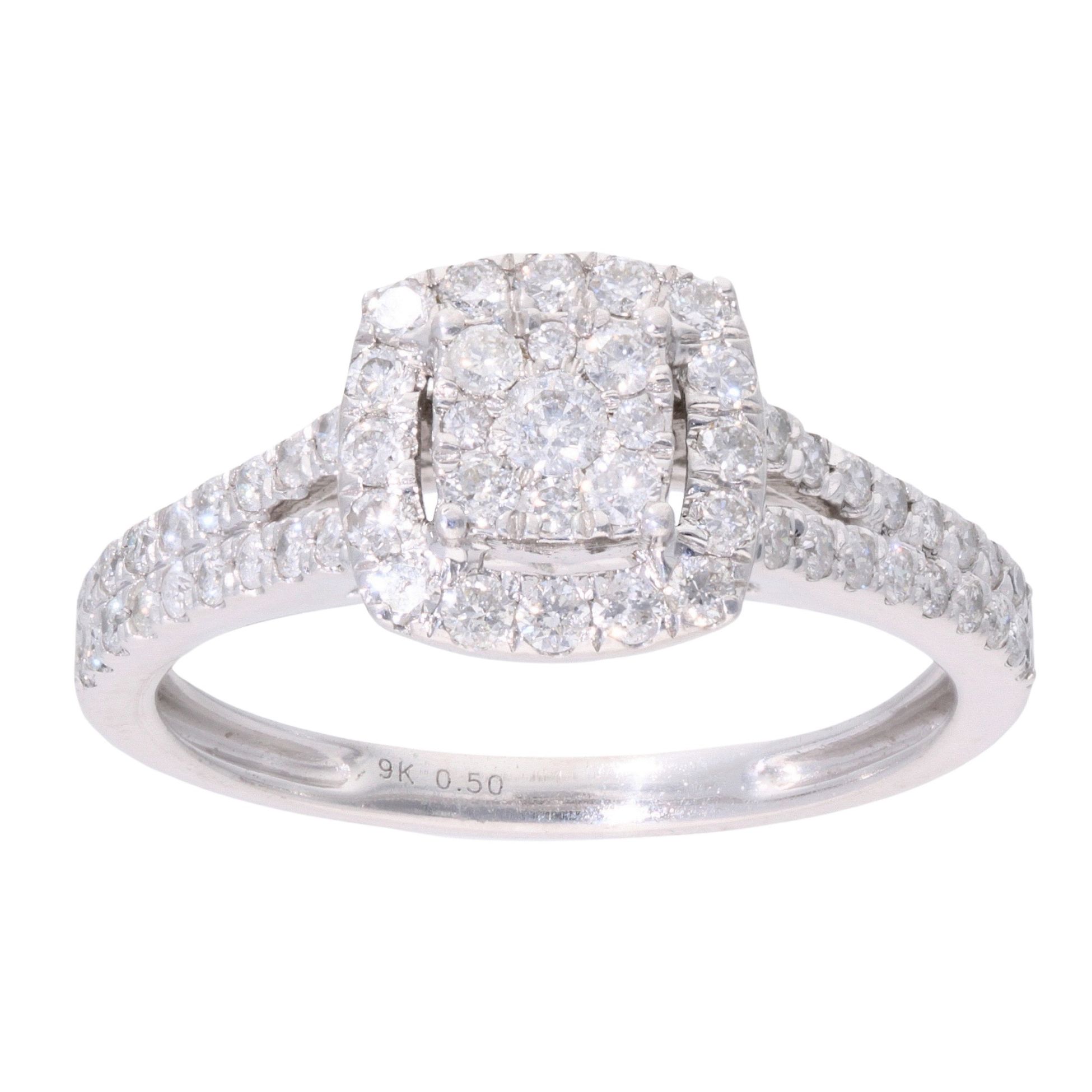 9ct White Gold 0.50ct Diamond Cluster Ring