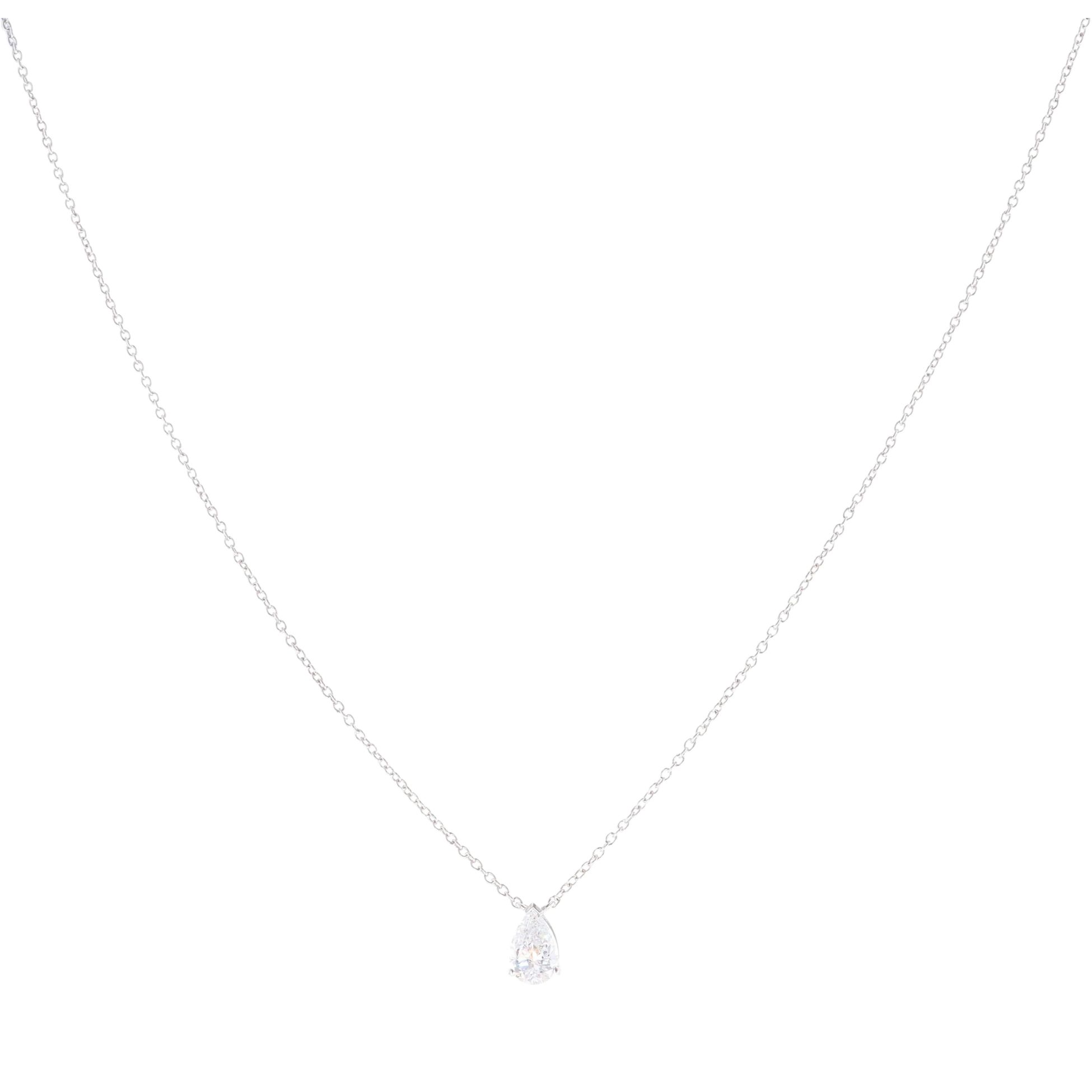 9ct White Gold 0.50ct Lab Grown Pear Cut Diamond Solitaire Pendant and Chain 18"