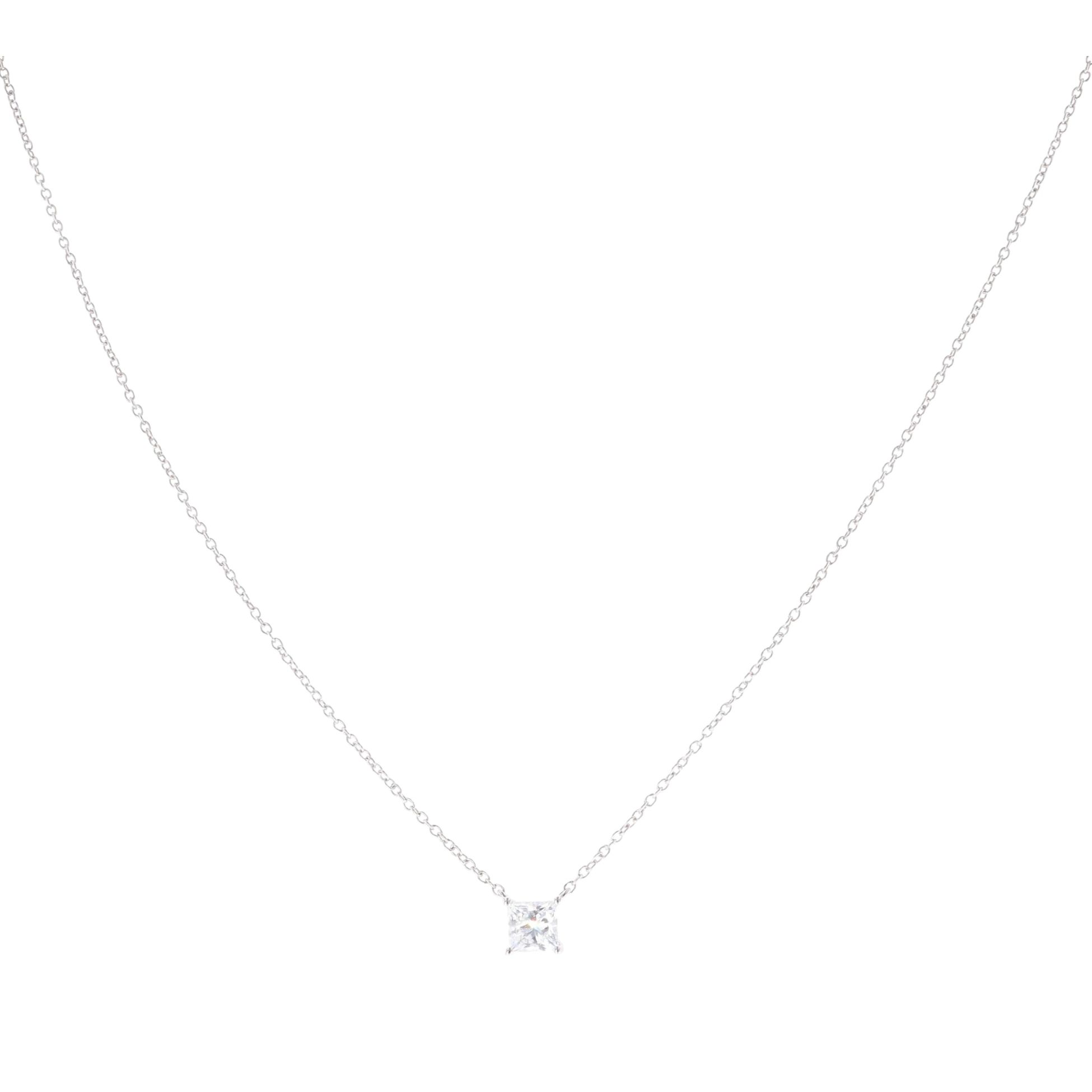 9ct White Gold 0.50ct Lab Grown Princess Cut Diamond Solitaire Pendant and Chain 18"