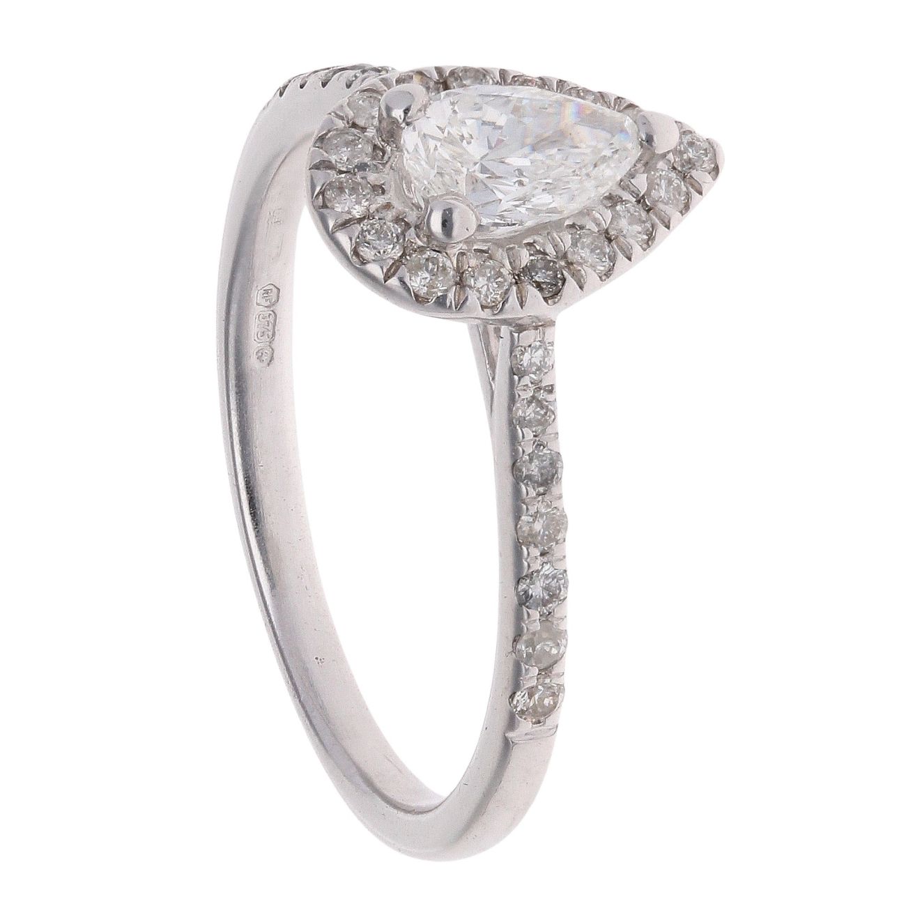 9ct White Gold 0.50ct Pear And Brilliant Cut Diamond Cluster Ring