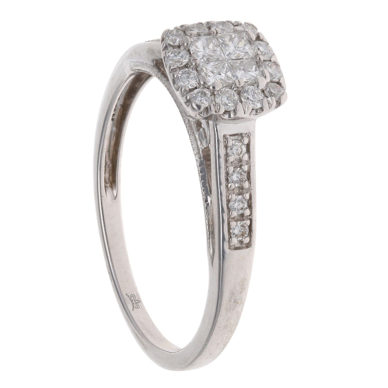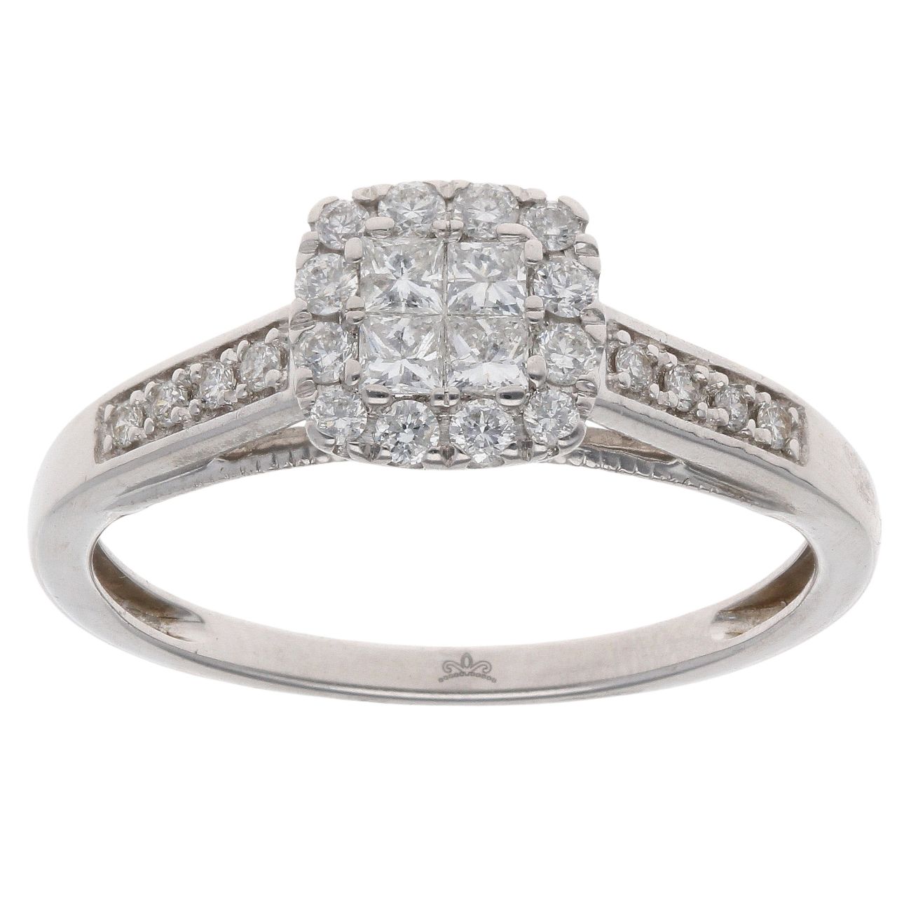 9ct White Gold 0.50ct Princess And Brilliant Cut diamond Cluster Ring