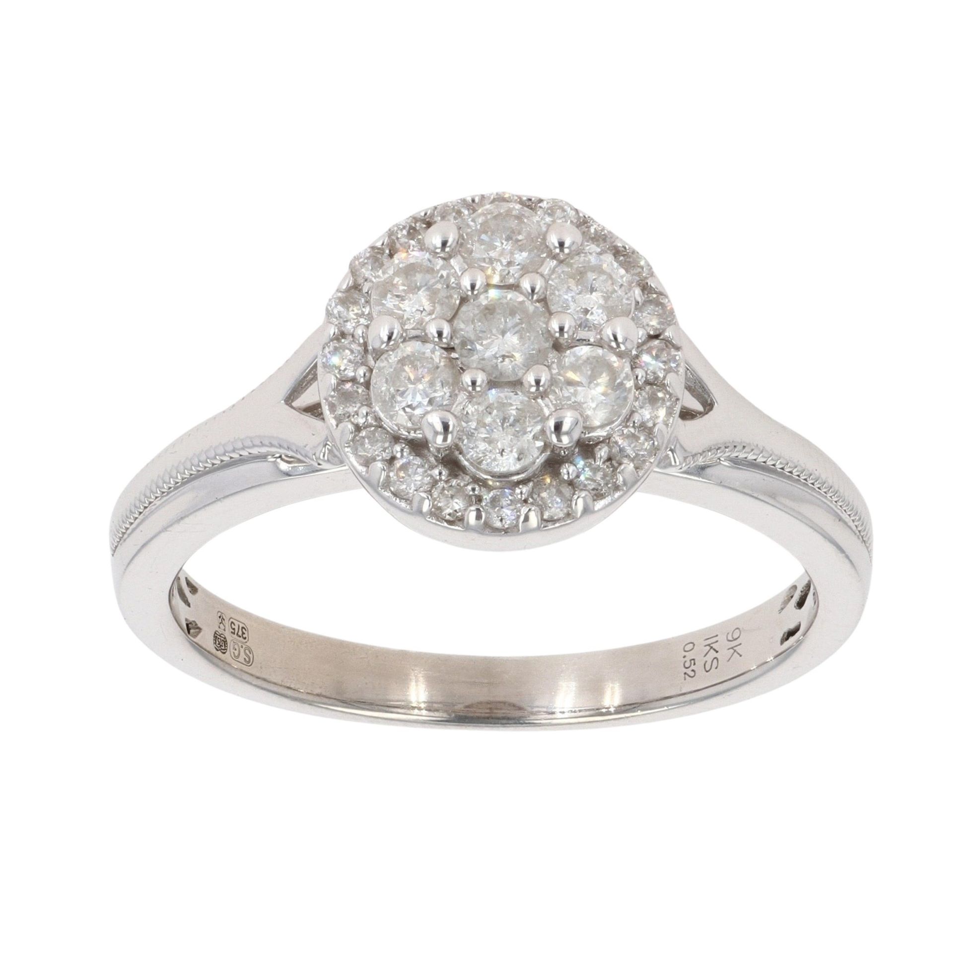9ct White Gold 0.52ct Brilliant Cut Diamond Cluster Ring