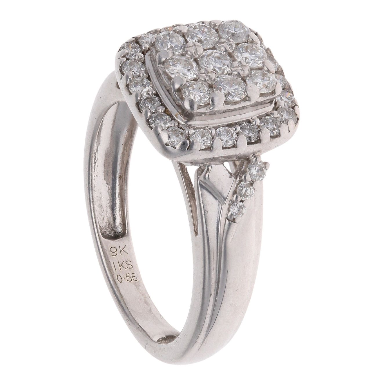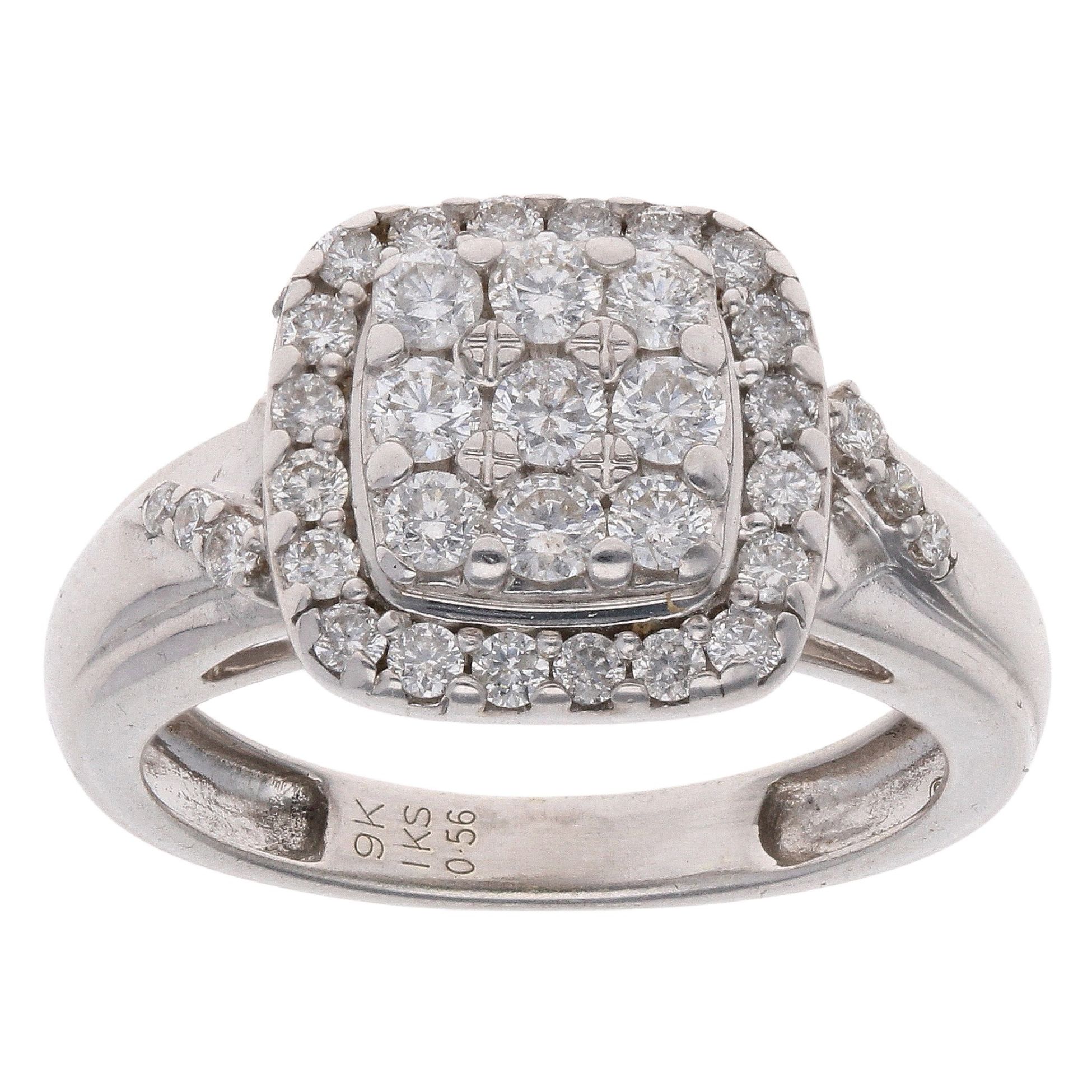 9ct White Gold 0.56ct Brilliant Cut Diamond Cluster Ring