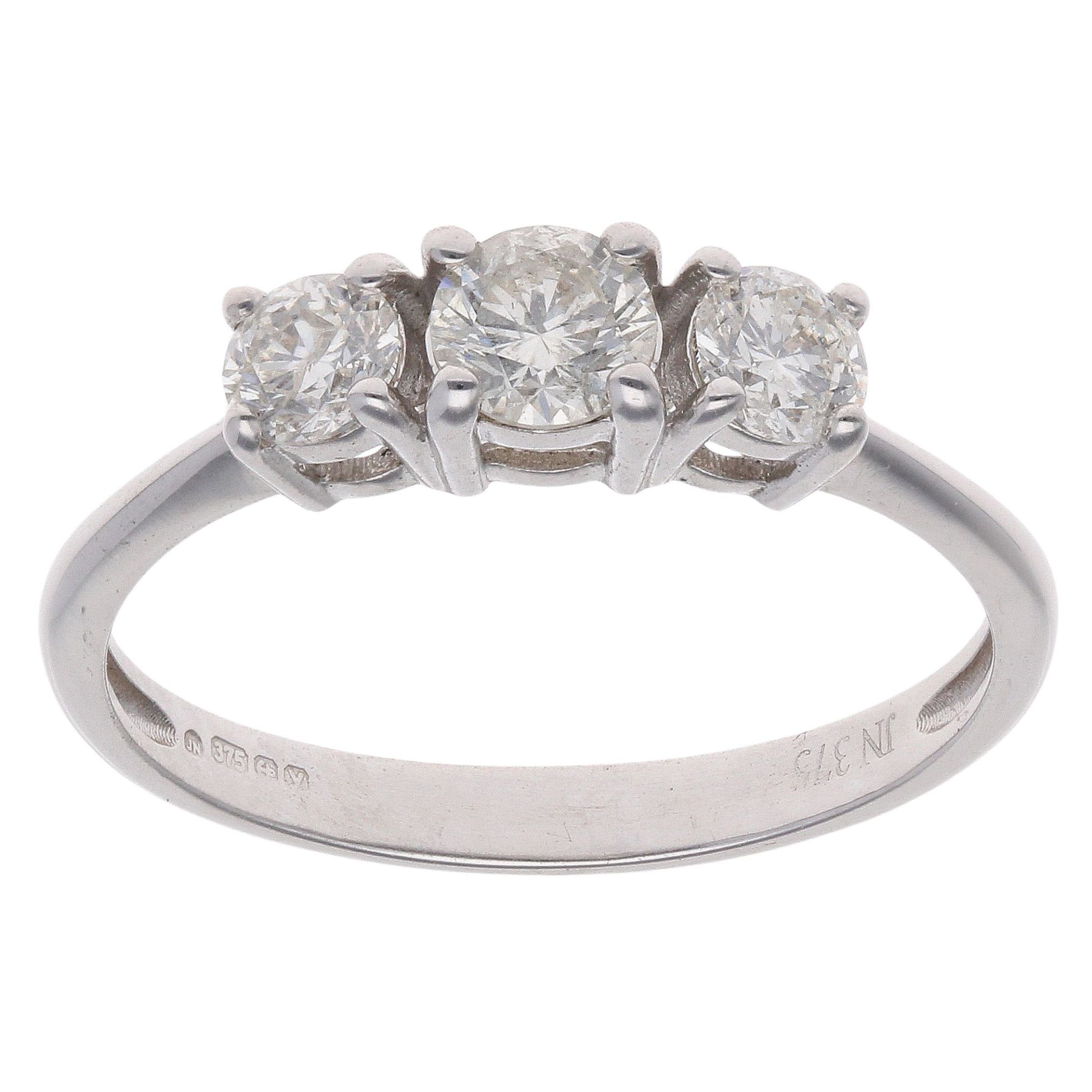 9ct White Gold 0.60ct Brilliant Cut Diamond Trilogy Ring