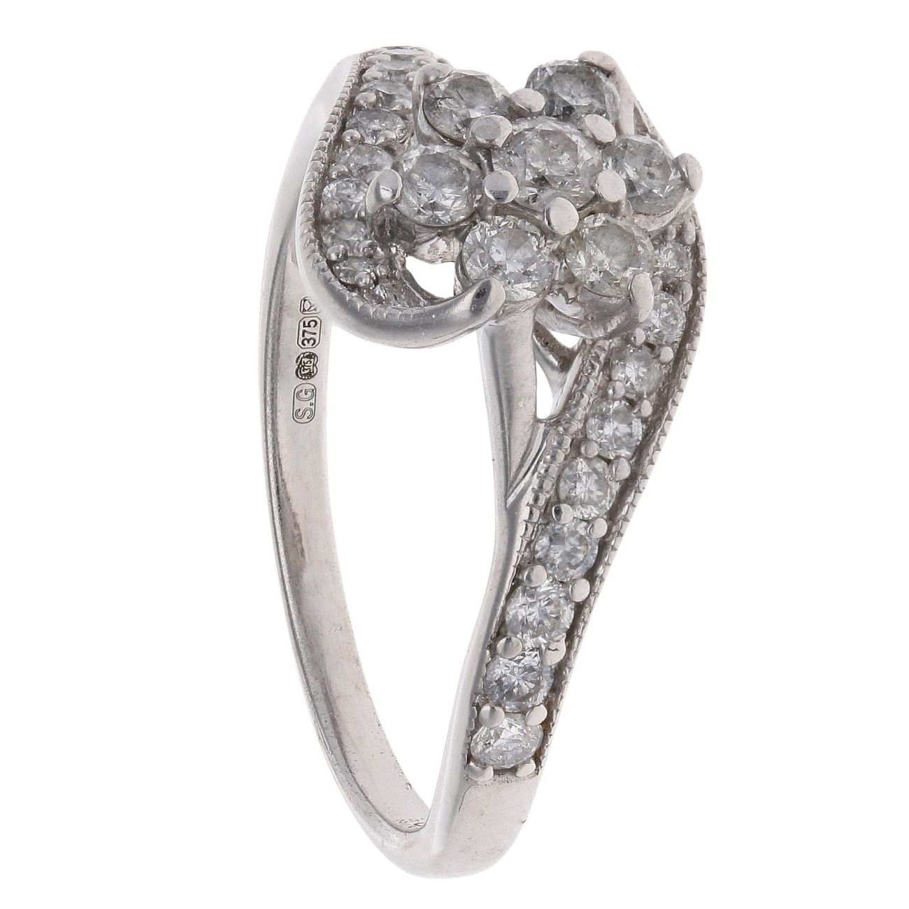 9ct White Gold 0.62ct Brilliant Cut Diamond Cluster Ring
