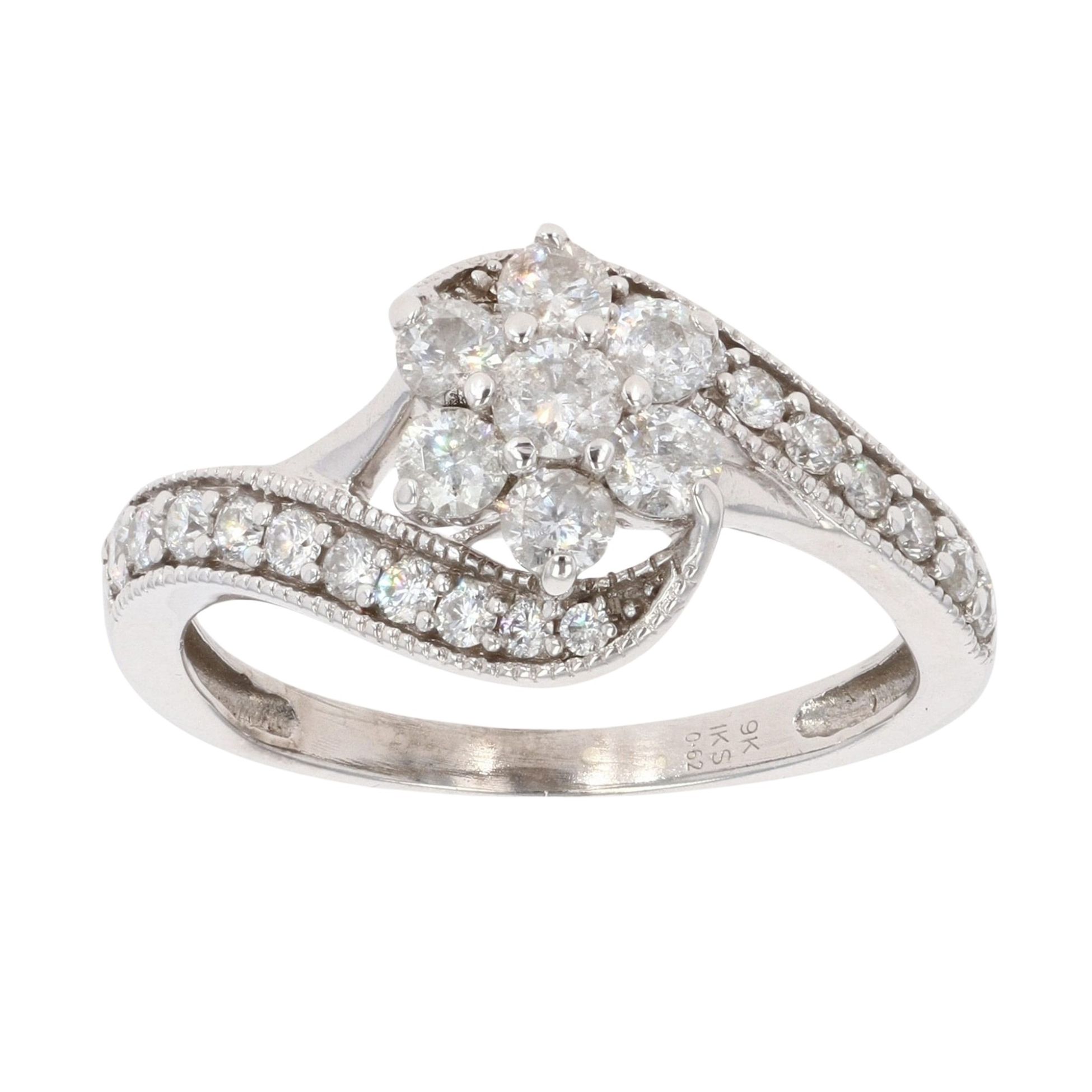 9ct White Gold 0.62ct Diamond Cluster Ring