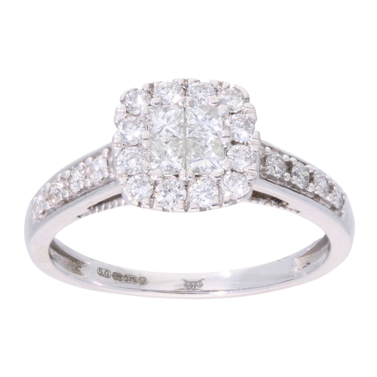9ct White Gold 0.66ct Diamond Cluster Ring