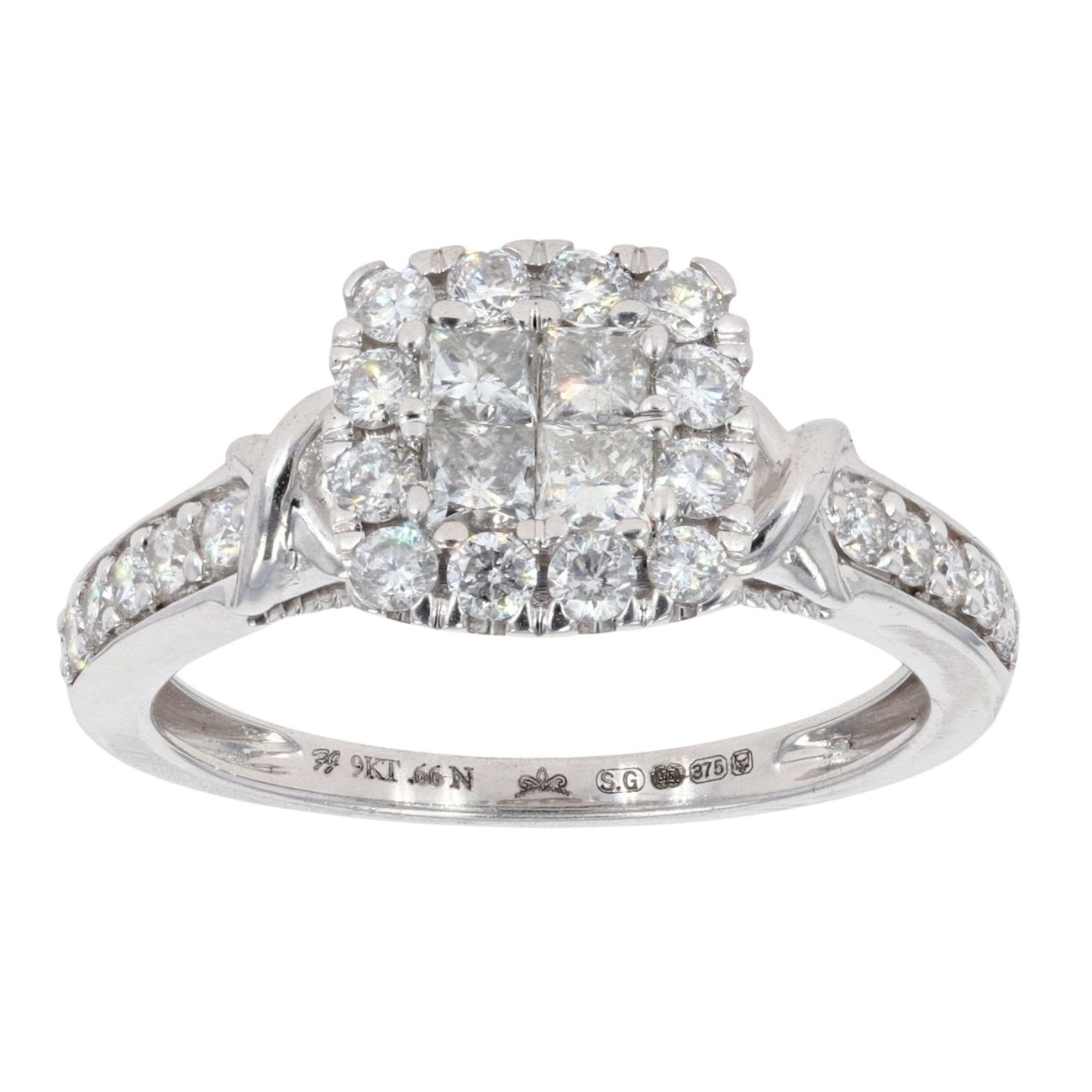9ct White Gold 0.66ct Diamond Princess Cut Cluster Ring