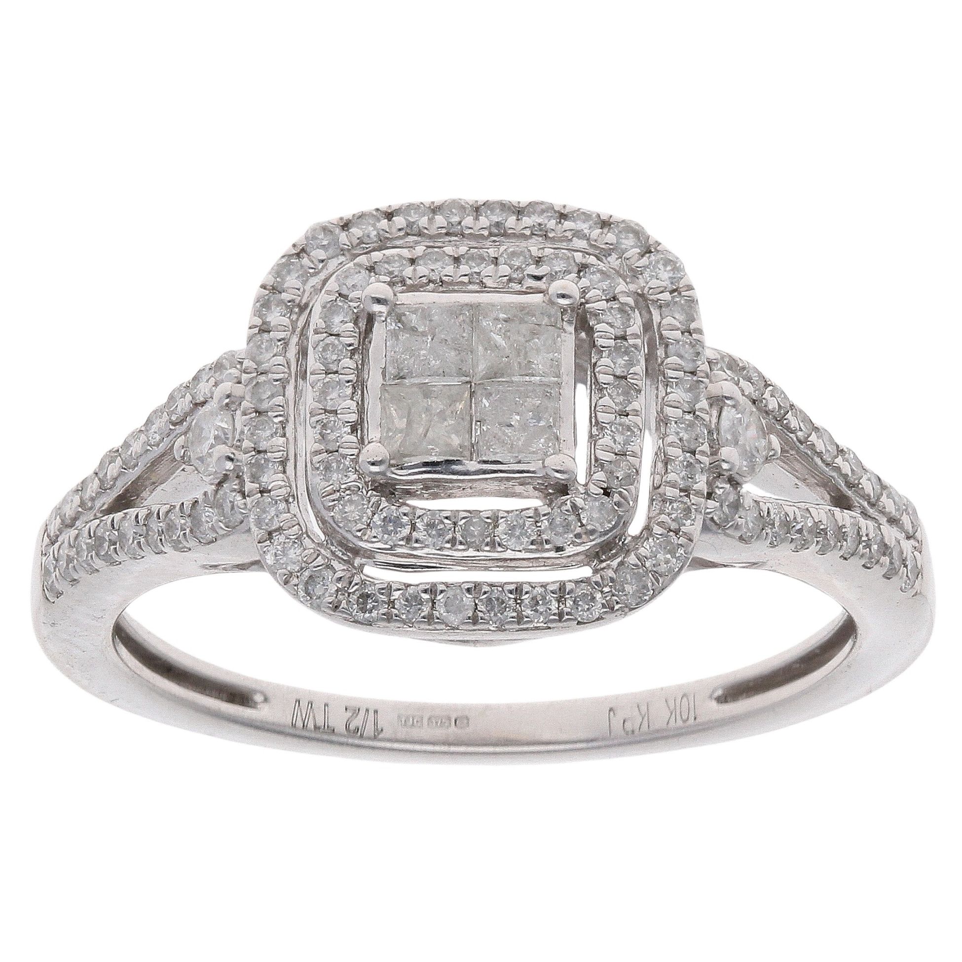 9ct White Gold 0.70ct Princess And Brilliant Cut Diamond Cluster Ring