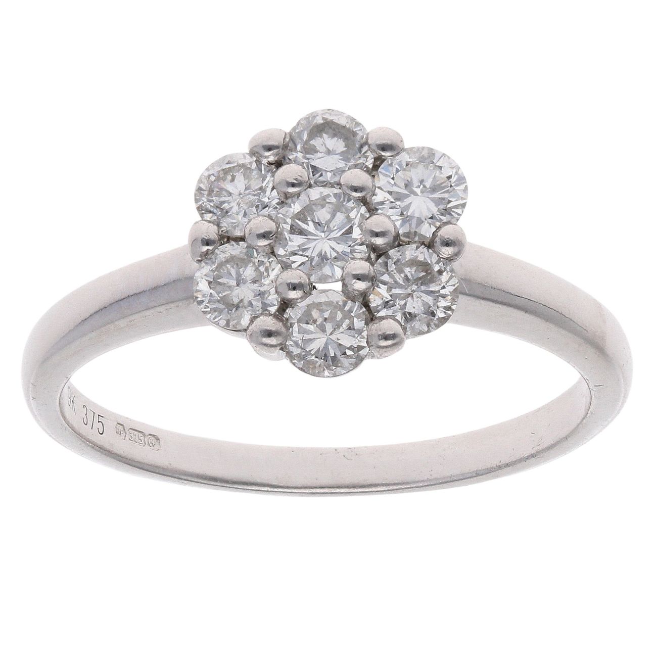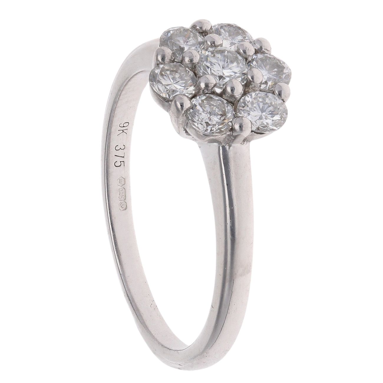 9ct White Gold 0.75ct Brilliant Cut Diamond Cluster Ring