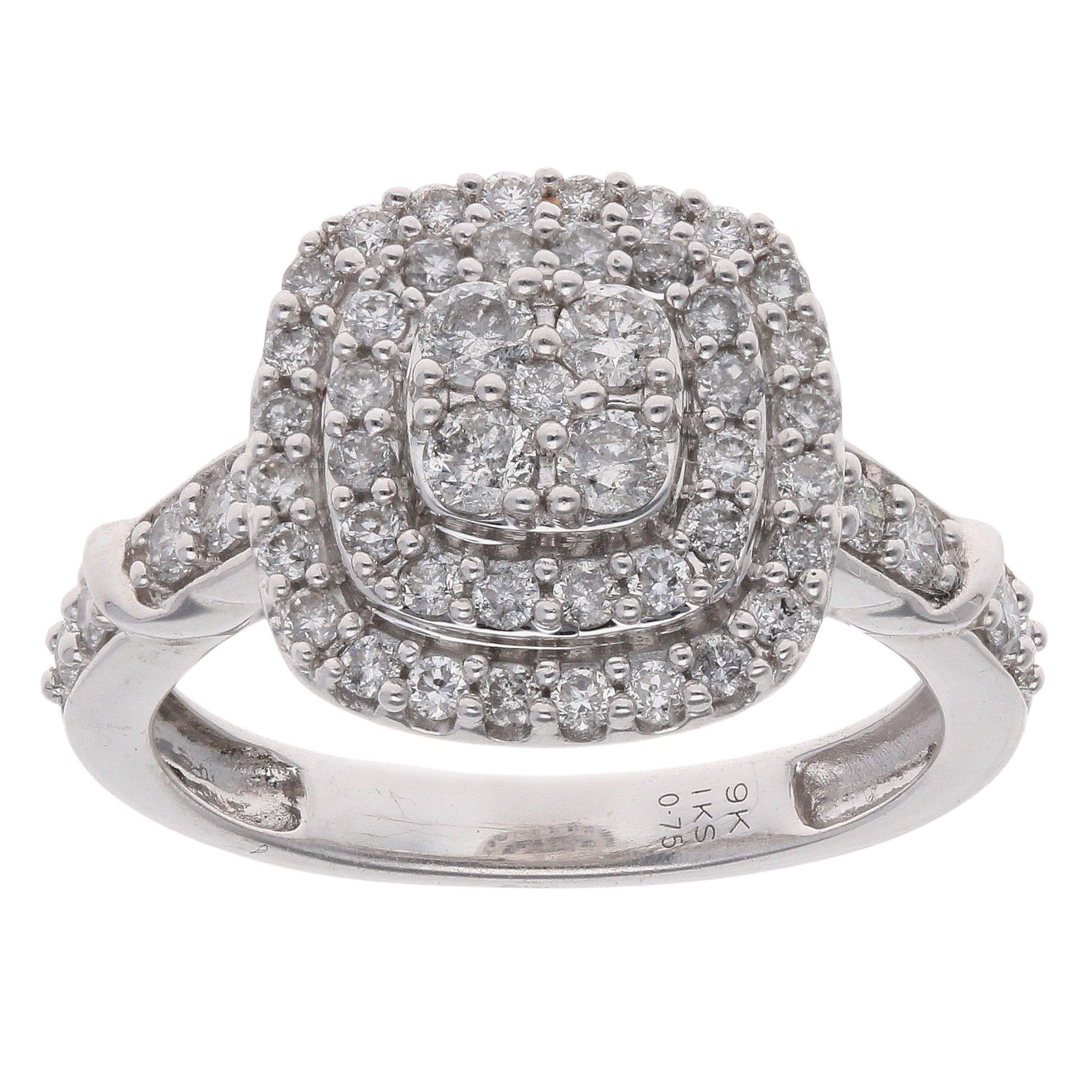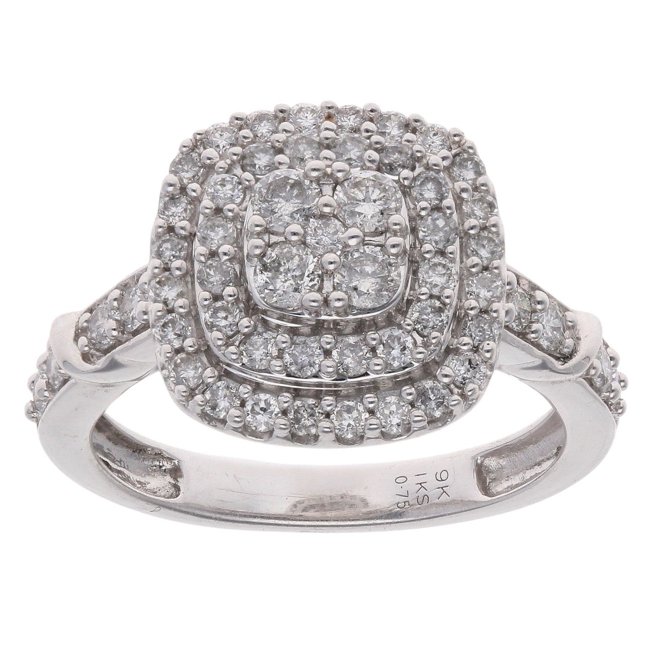9ct White Gold 0.75ct Brilliant Cut Diamond Cluster Ring