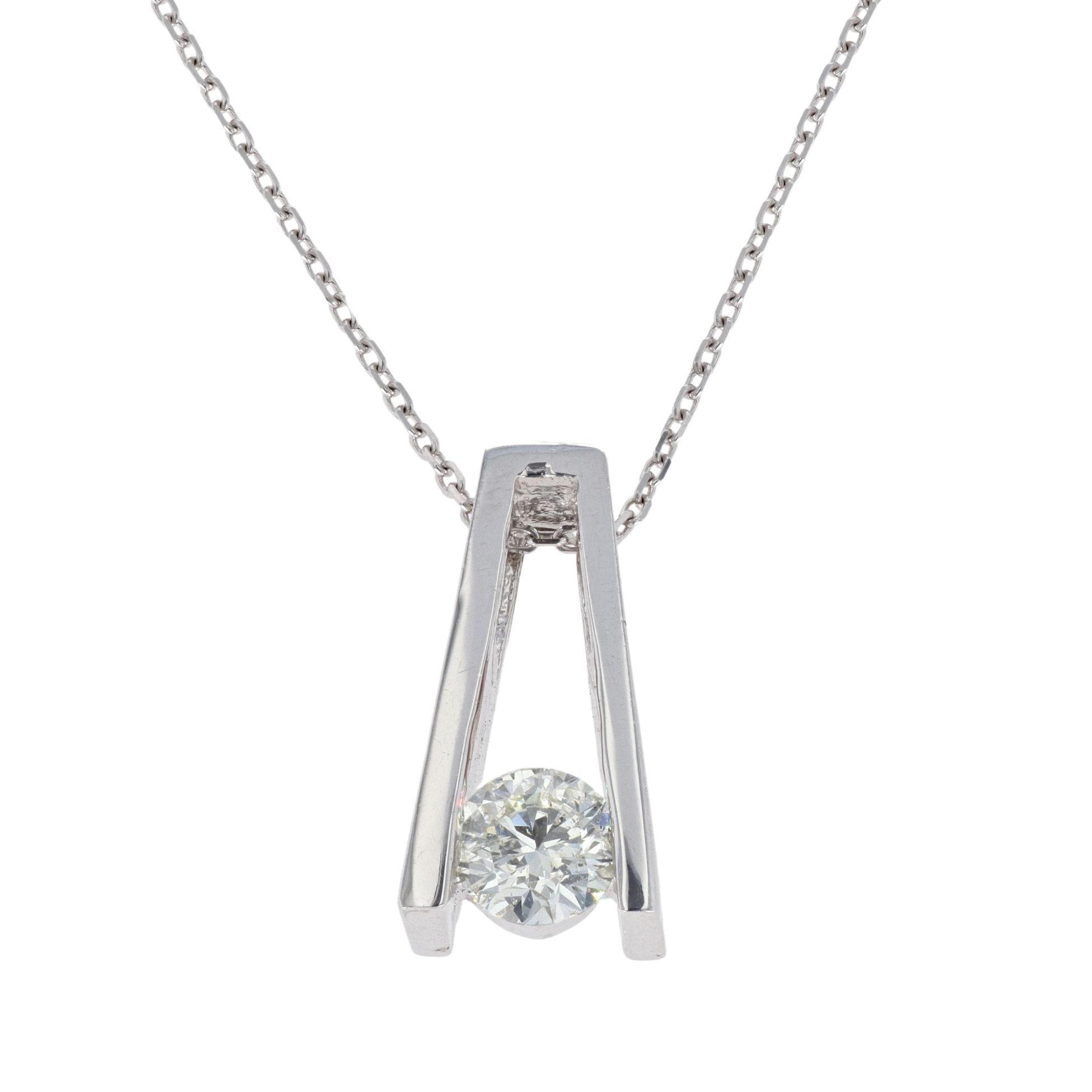 9ct White Gold 0.75ct Diamond Solitaire Pendant and Chain 18"
