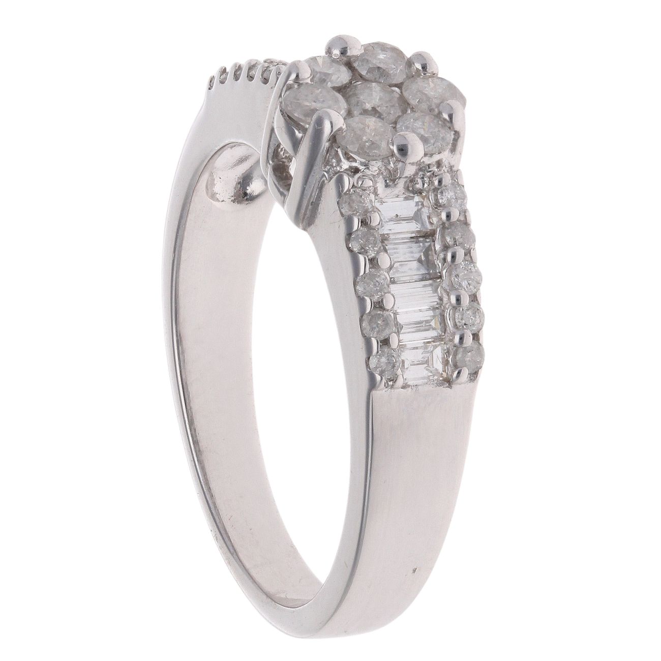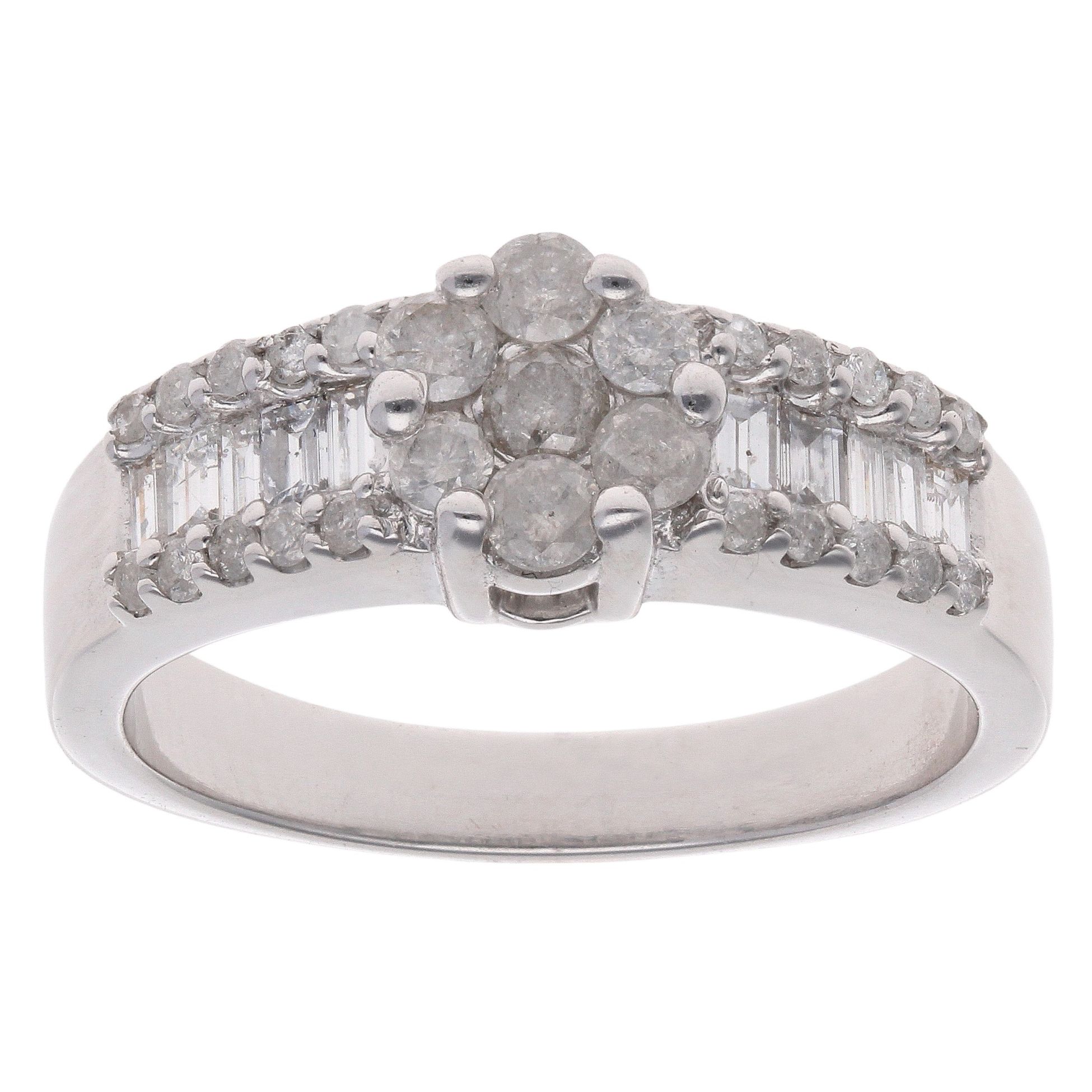 9ct White Gold 1.00ct Brilliant And Baguette Cut Diamond Cluster Ring
