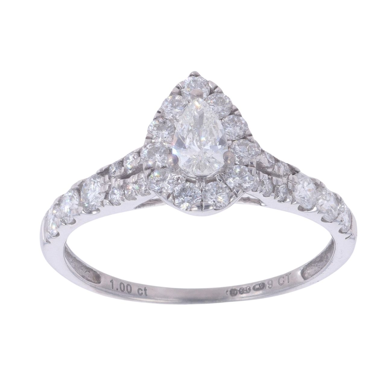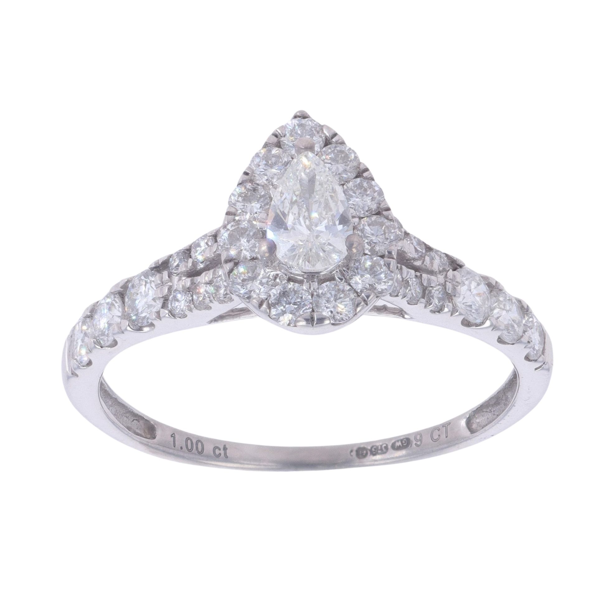 9ct White Gold 1.00ct Brilliant And Pear Cut Diamond Cluster Ring