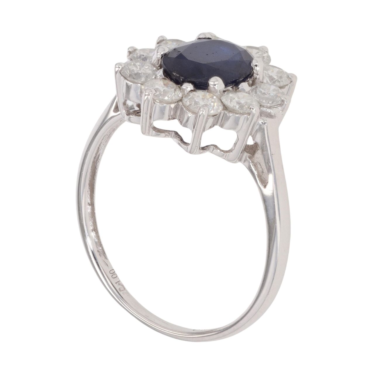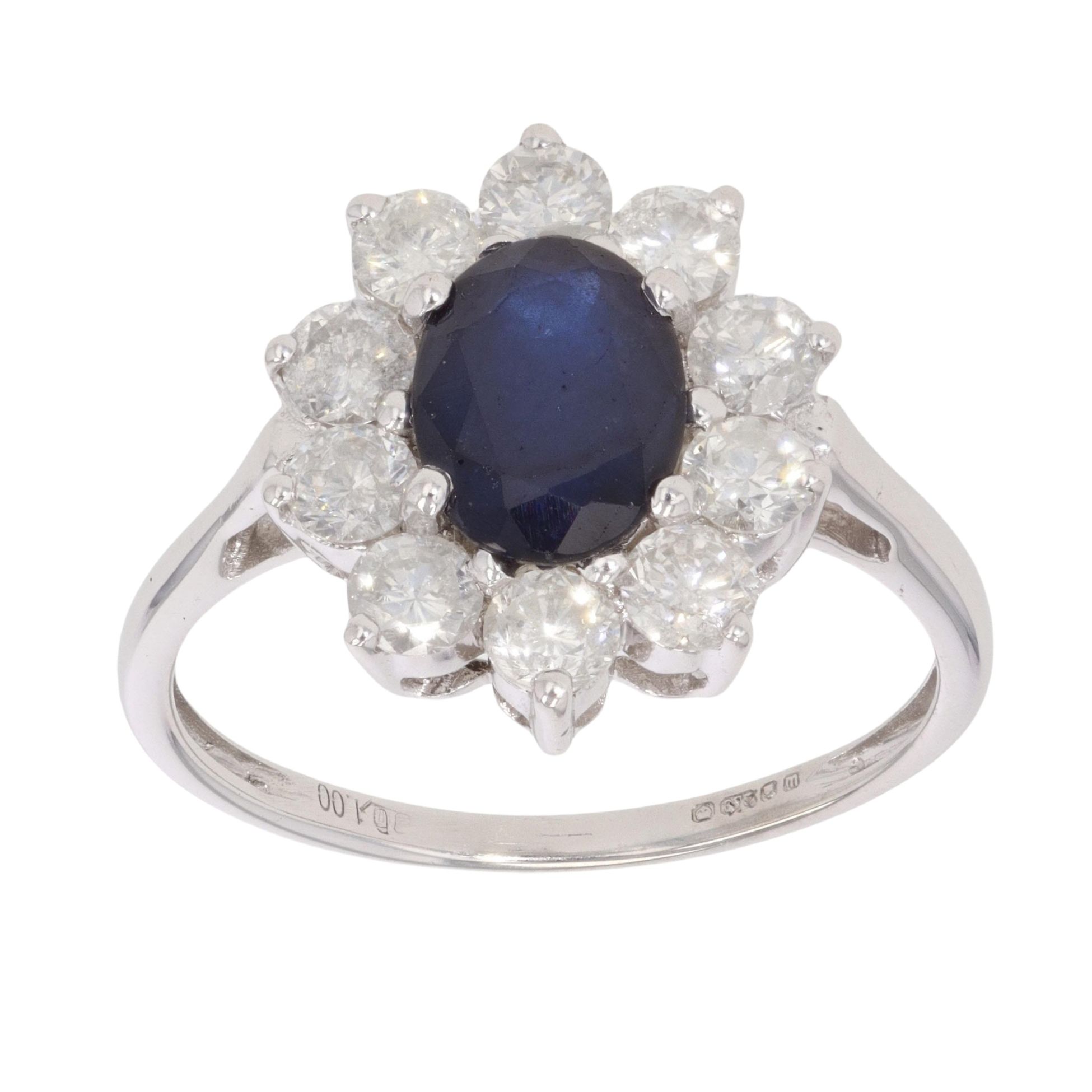 9ct White Gold 1.00ct Diamond And Sapphire Cluster Ring
