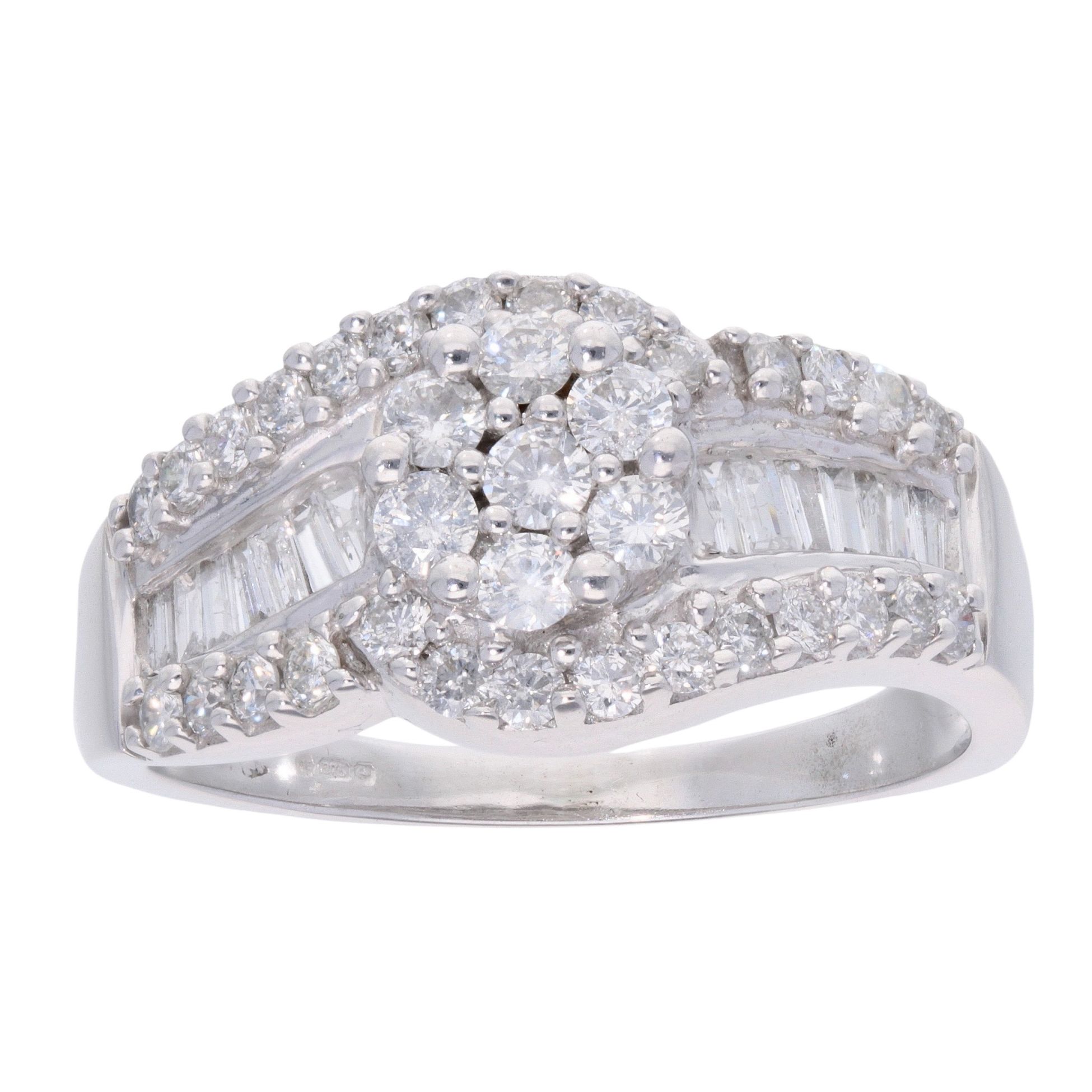 9ct White Gold 1.00ct Diamond Cluster Ring