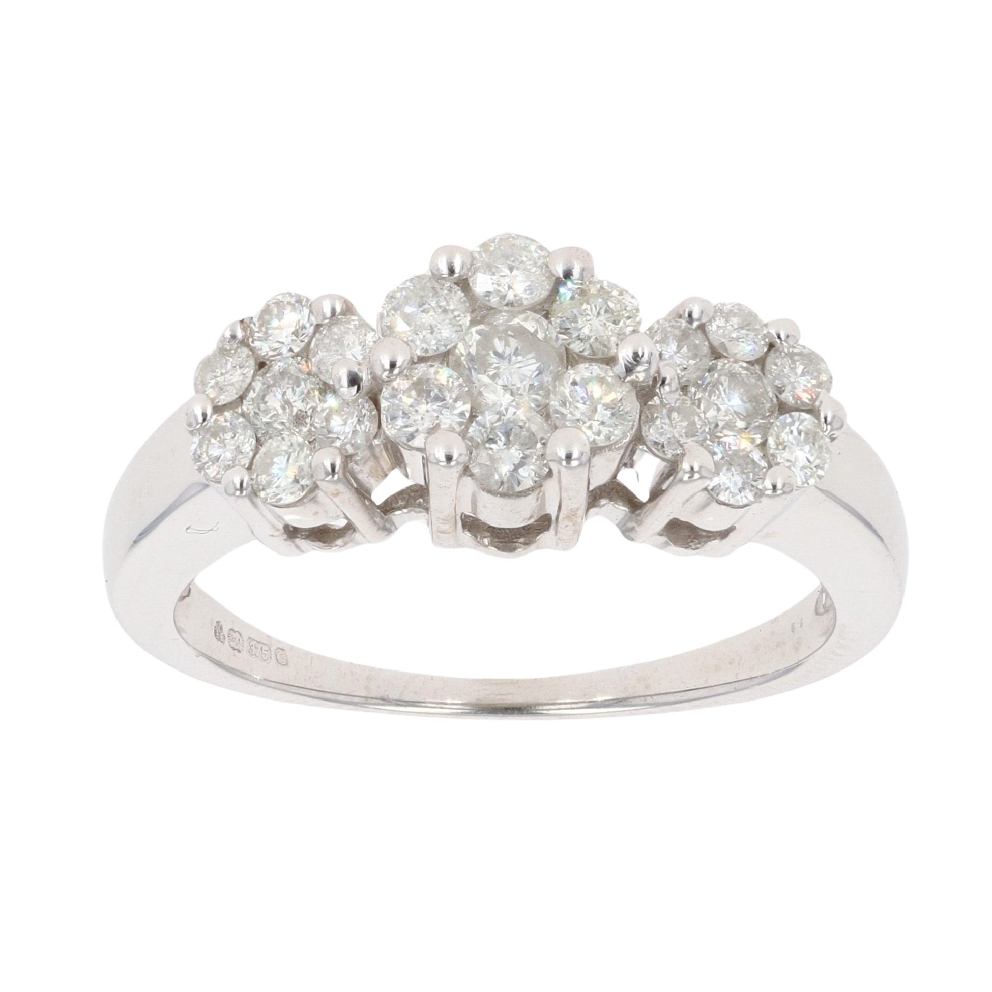 9ct White Gold 1.00ct Diamond Cluster Ring