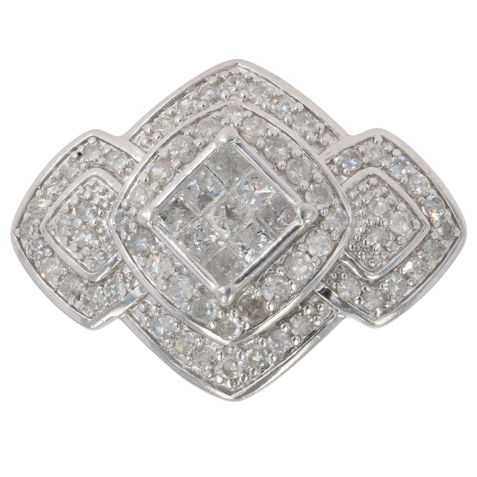 9ct White Gold 1.00ct Princess And Brilliant Cut Diamond Cluster Ring