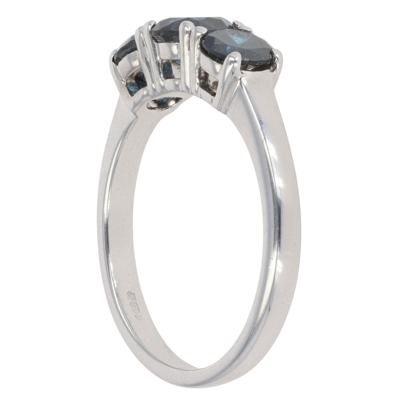 9ct White Gold 1.15ct Brilliant Cut Blue Diamond Trilogy Ring
