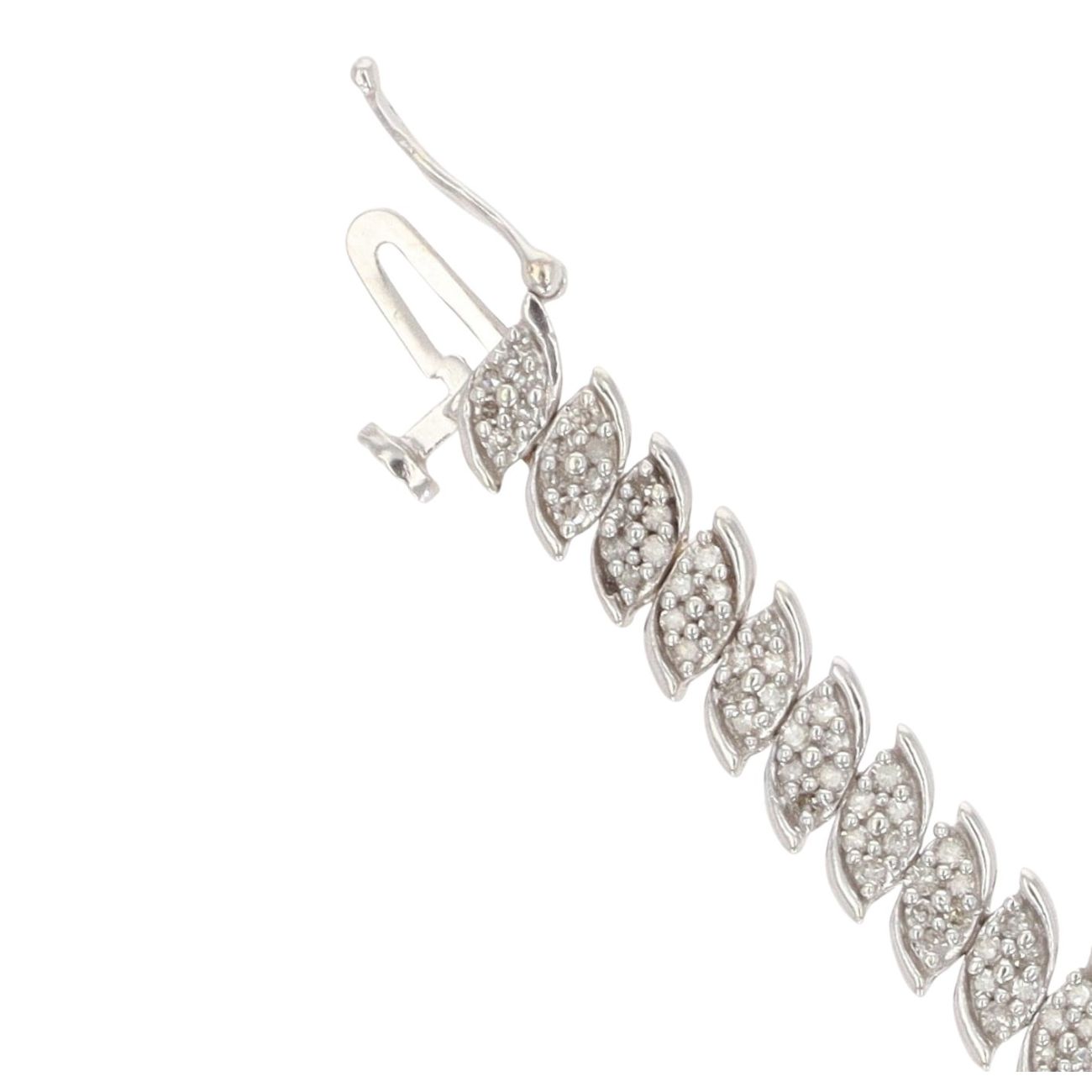 9ct White Gold 1.50ct Brilliant Cut Diamond Leaves Bracelet 6.5"